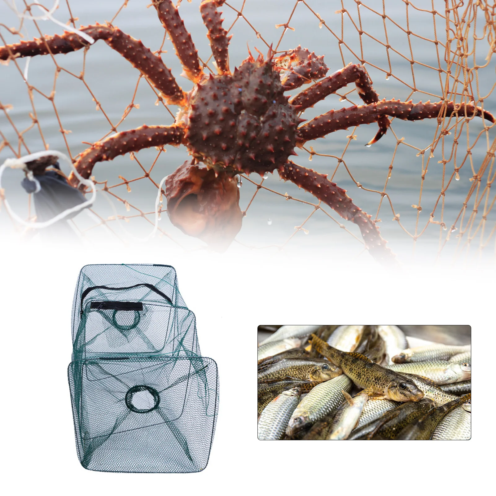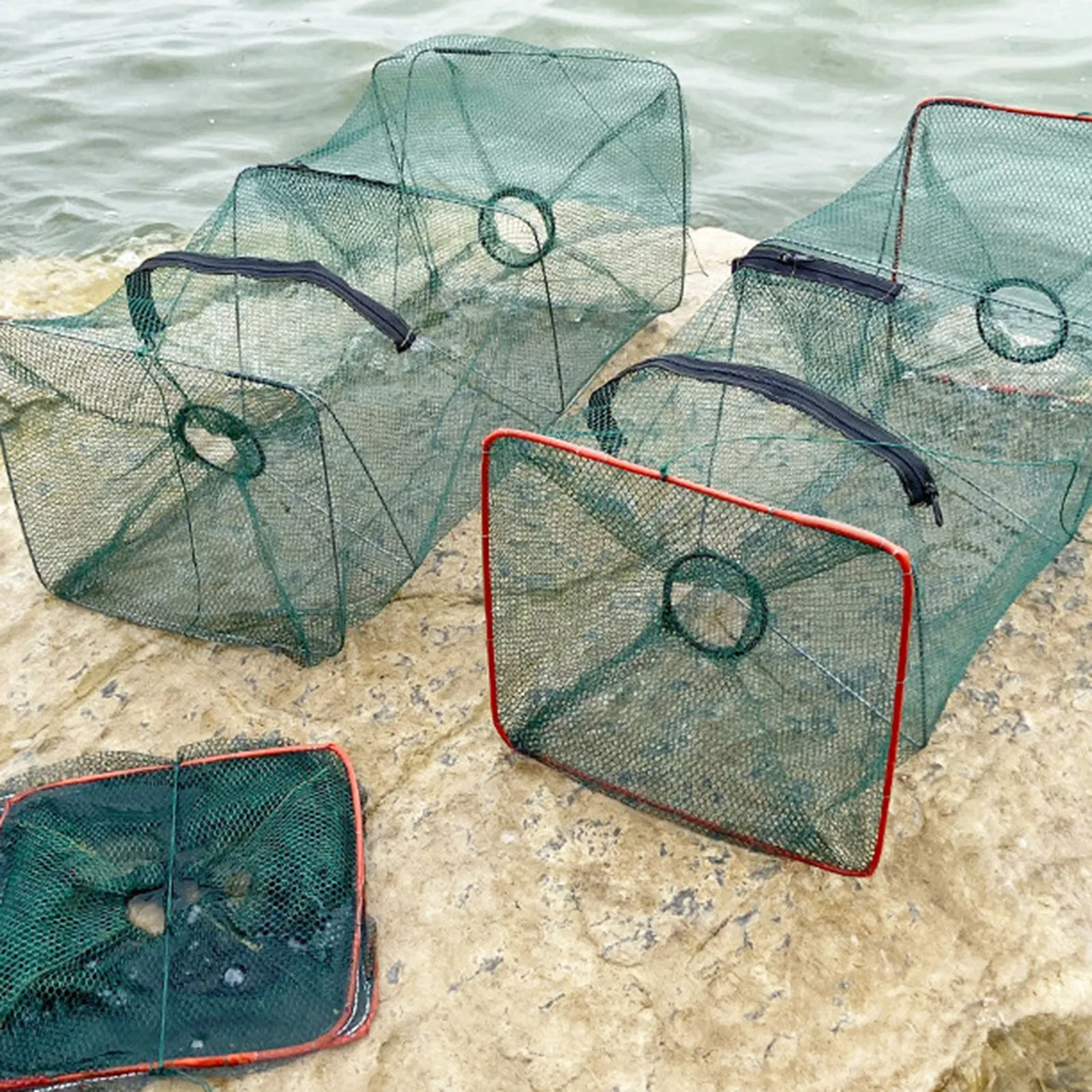 Construcción duradera: fabricadas con marcos de metal resistentes y malla de nailon duradera, nuestras trampas de pesca están diseñadas para soportar los rigores de la captura de cangrejos y camarones, lo que garantiza un uso duradero.