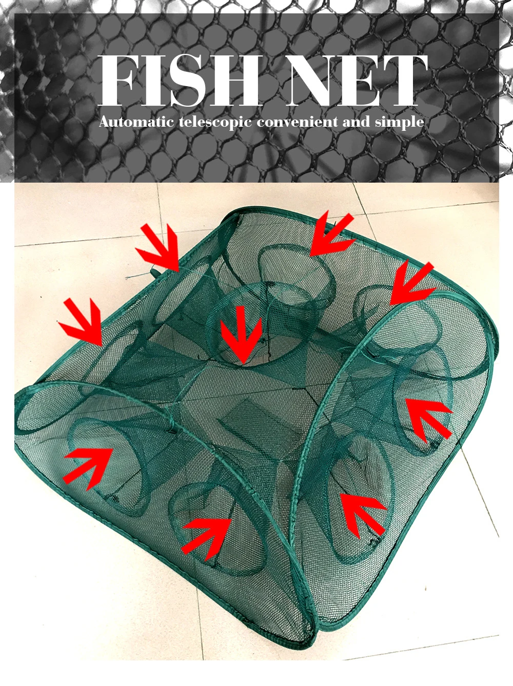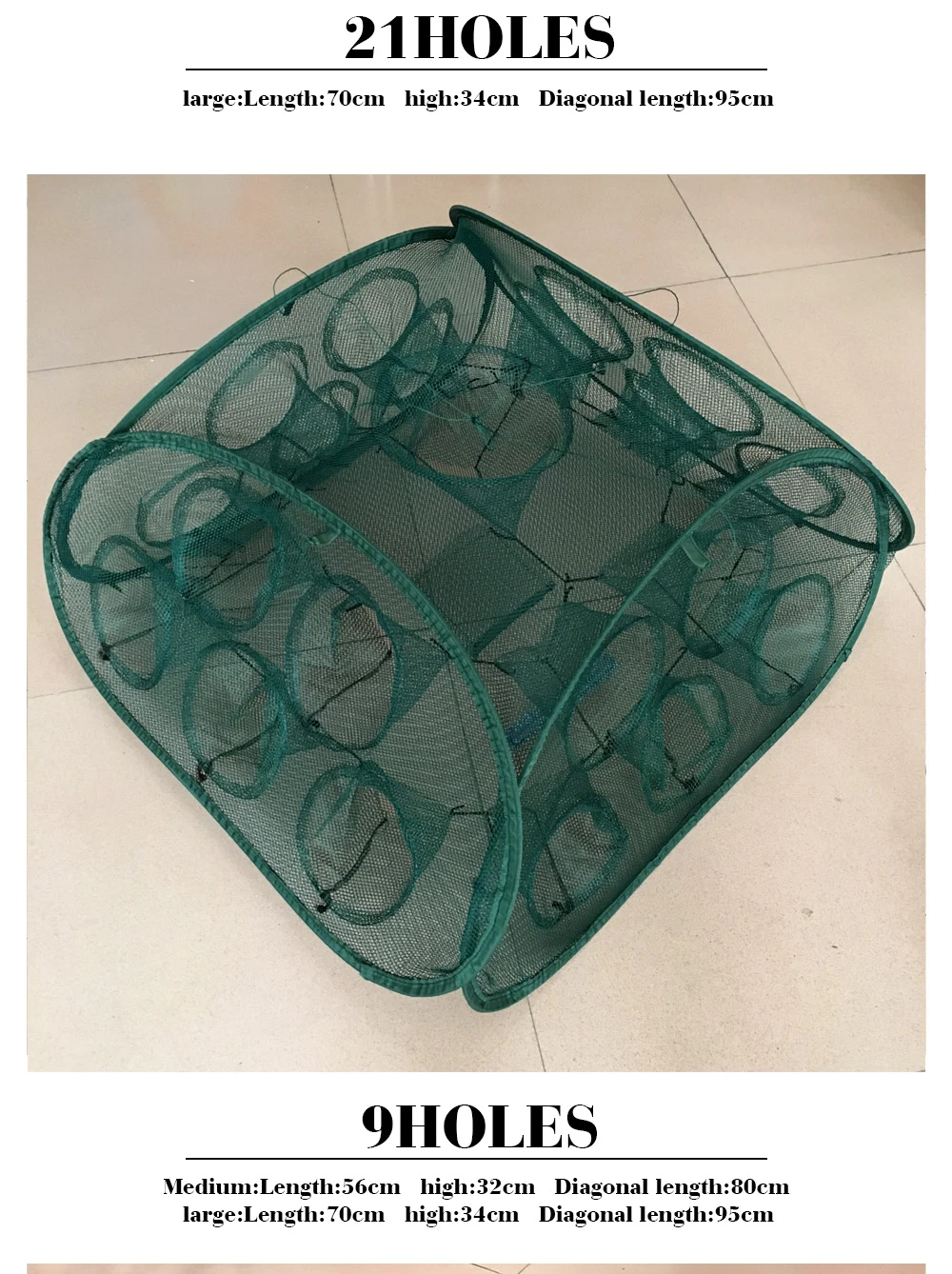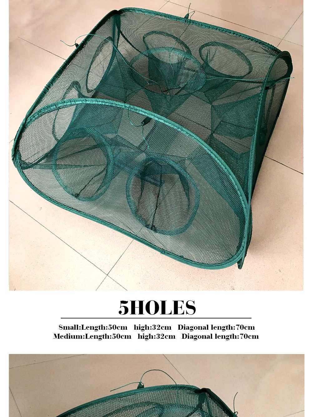 Nueva trampa de pesca automática portátil plegada de 5/9/21 agujeros para camarones, red de pesca, peces, camarones, pececillo, cebos de cangrejo, trampa de malla fundida