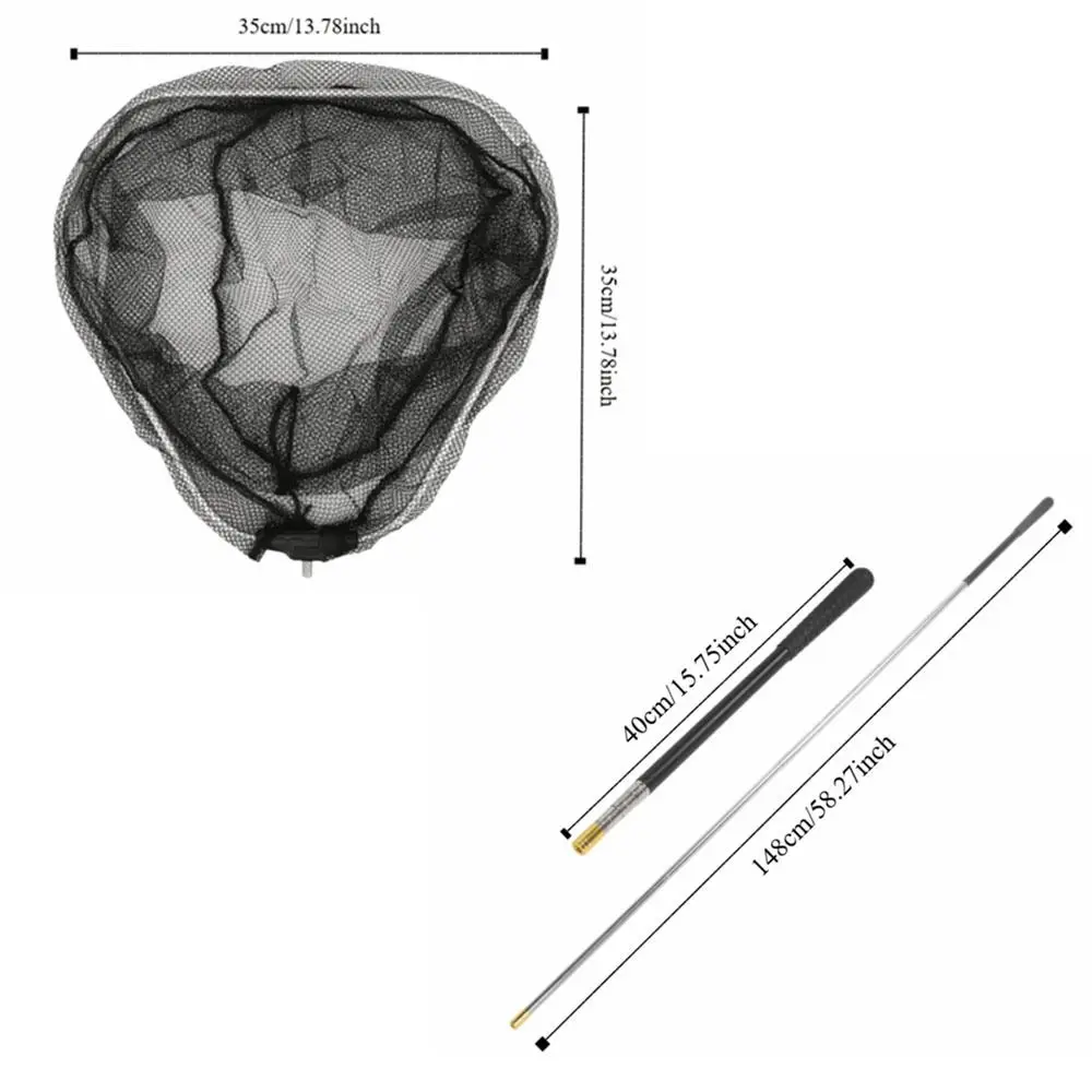 Lightweight and Portable Design: The fishing net pole is made of high-strength aluminum alloy material, with the entire set weighing only about 270 grams. Its unique collapsible structure reduces the length to just 40 centimeters when folded, making it easy to fit into a backpack. It's an ideal choice for outdoor fishing and hiking trips. Versatile Application Scenarios: Equipped with a nylon net with a depth of 35 centimeters, the evenly dense mesh can effectively catch various types of aquatic animals such as fish, shrimp, and crabs, making it suitable for fishing in different environments such as freshwater and saltwater. User-Friendly Operation Experience: Once extended, the net pole reaches a length of 1.48 meters, effectively increasing the operational range. The ergonomic handle design provides a firm grip, allowing easy operation whether you're on the shore or a boat. Stable Triangular Structure: The fishing net features a triangular frame design, offering better stability compared to traditional circular nets. It submerges quickly and is less prone to rolling, significantly increasing the success rate of capture. Durable and Easy Maintenance: The aluminum alloy frame is rust-proof and corrosion-resistant, while the nylon mesh is tough and wear-resistant. Simply rinse with water after use to keep it clean. The foldable design saves space, ensuring long-lasting durability. Item Type: Fishing Net Fishing Net Size:35×35cm(13.78×13.78in) Fishing Rod Size: Unfold Size: Approx. 40x3 cm(15.75x1.18 in) Expanded Size:Approx.148×3cm(58.27×1.18in) Fishing Rod Product Weight: Approx. 170g Fishing Net Weight:100g Material: Aluminum Alloy, Nylon Package List:1 x Fishing Net/1 x Fishing Rod Notes: 1.The real color of the item may be slightly different from the pictures shown on website caused by many factors such as brightness of your monitor and light brightness. 2. Please allow slight manual measurement deviation for the data.