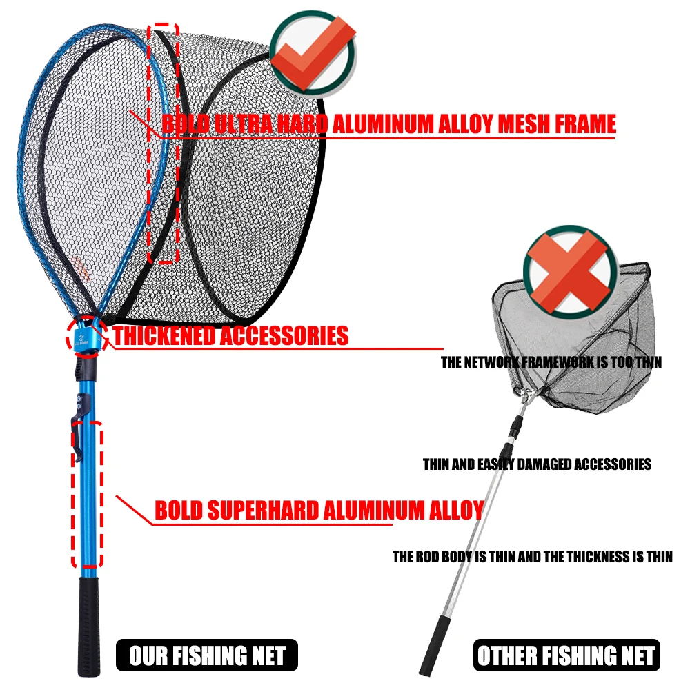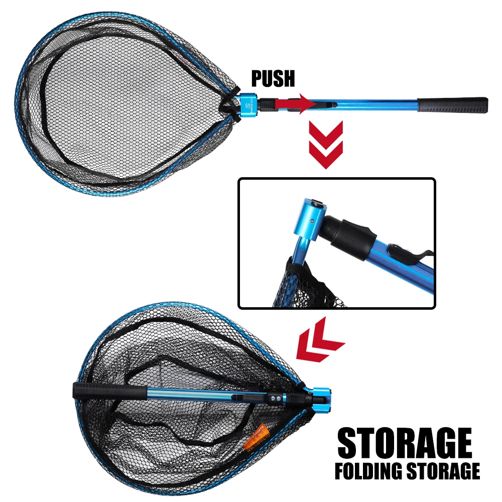 Red de pesca plegable portátil ultraligera, redes de mano de pesca con mosca de plegado rápido, Red de lanzamiento de peces de aterrizaje ligero, 90x35cm