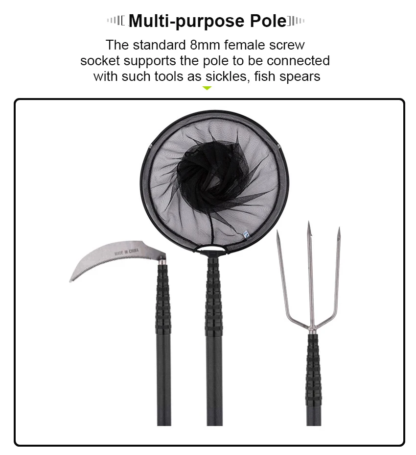 7. Poste multiusos, el tornillo hembra estándar de 8mm soporta el poste para conectarse con herramientas como hoces, lanzas de pescado.