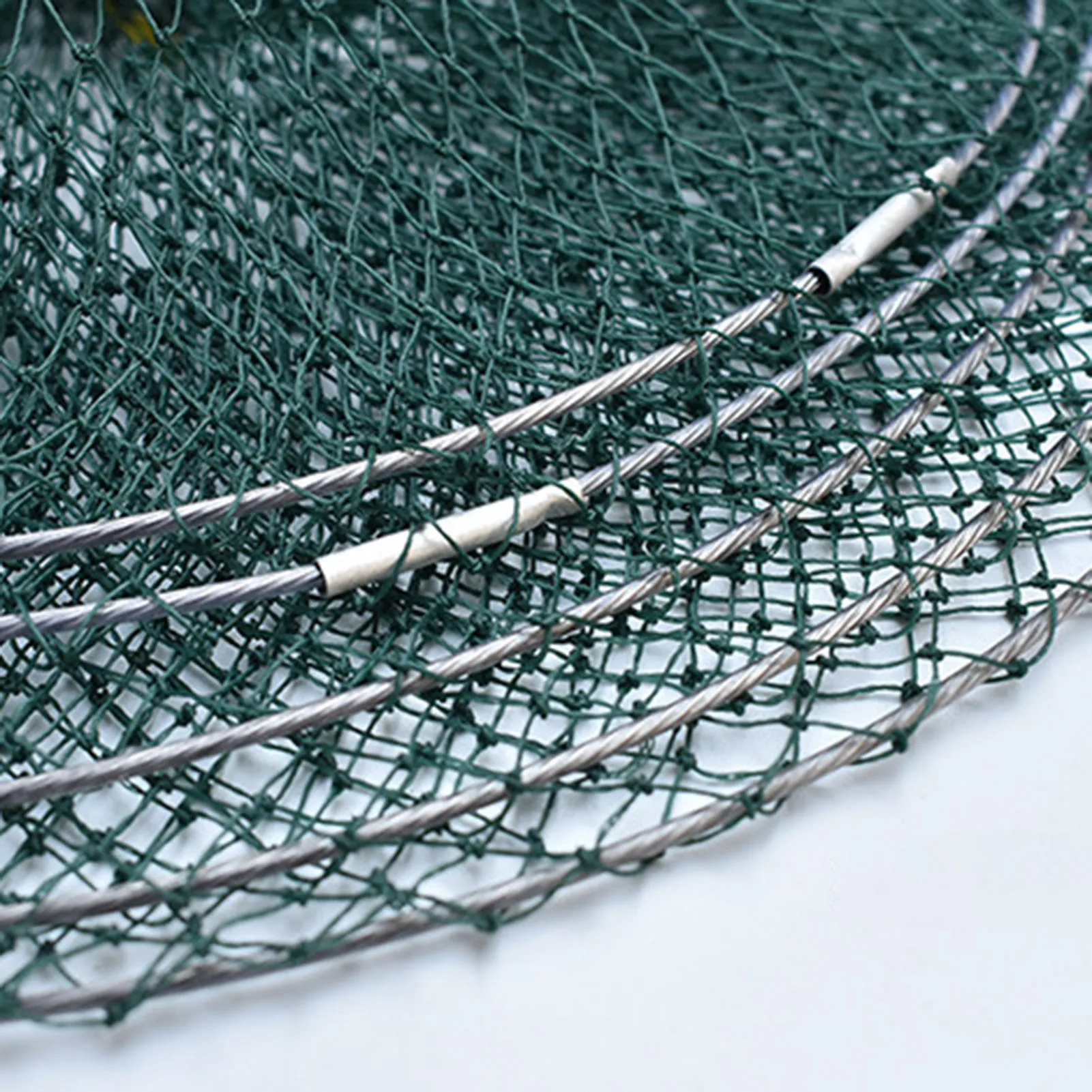 5. Cesta de red de pesca con trampa para ollas de pescado: la cesta de red de pesca está diseñada como trampa para ollas de pescado, lo que le permite capturar peces fácilmente.Su construcción robusta garantiza durabilidad y es adecuada para varios tipos de peces, incluidos cangrejos, cangrejos y otros peces pequeños.