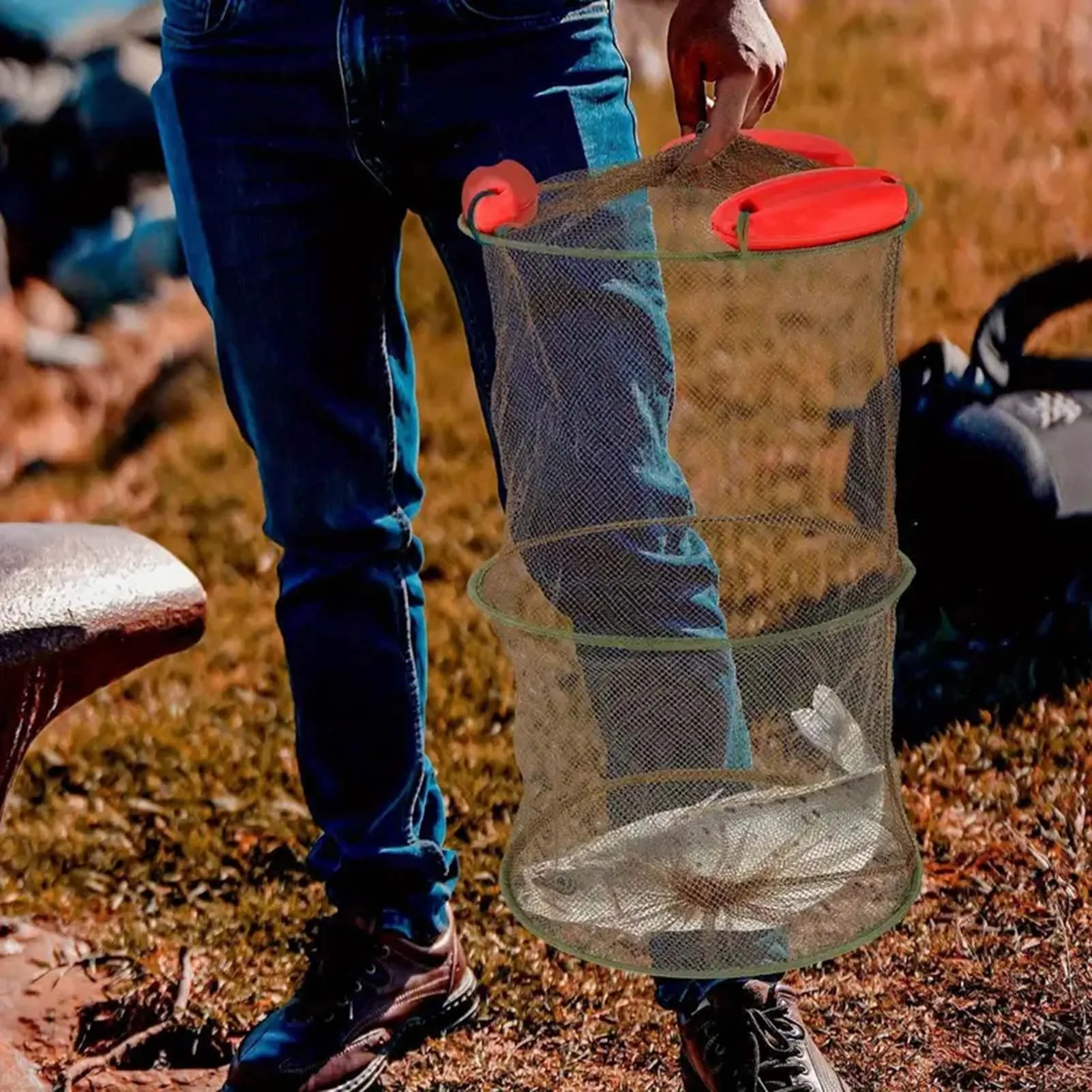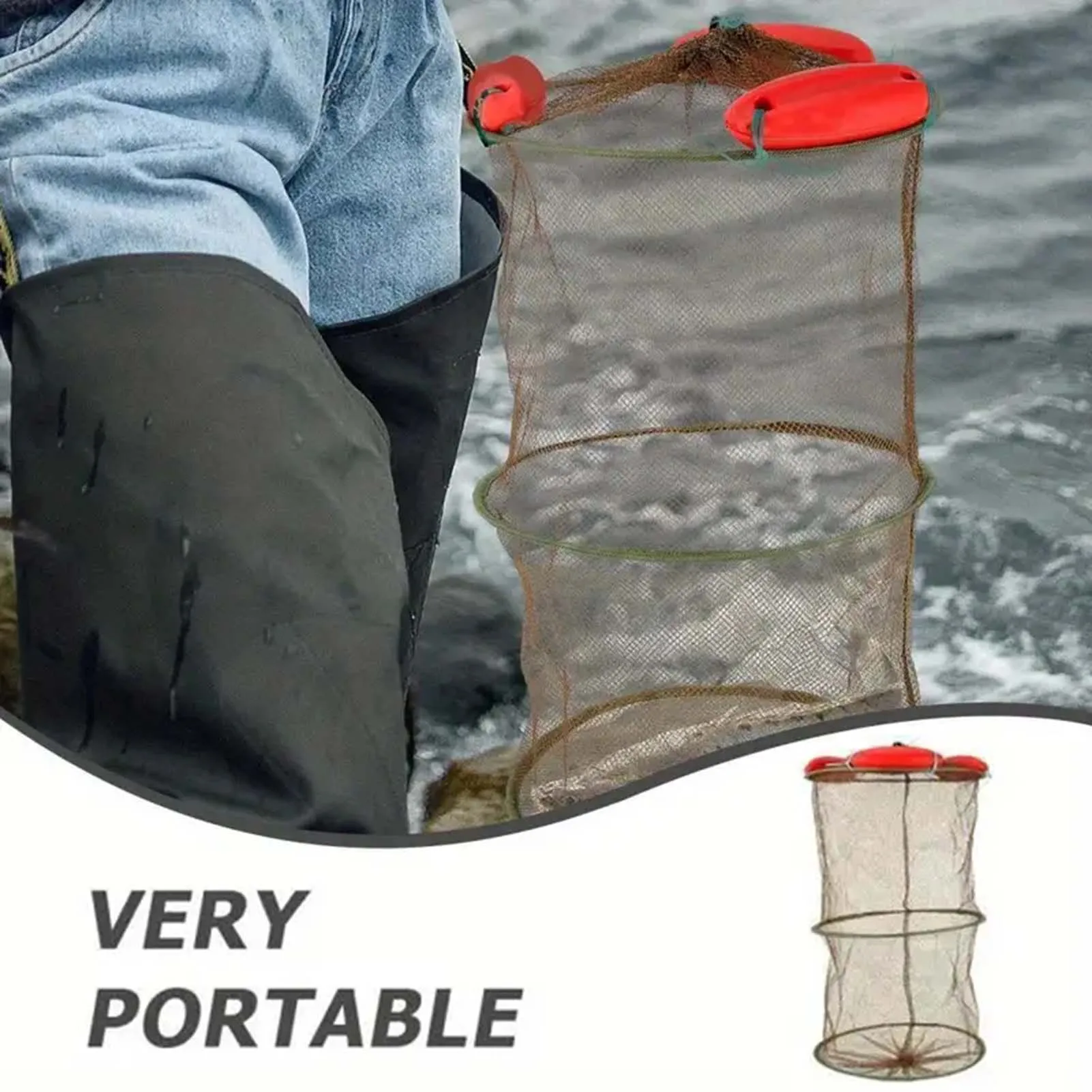 Lleve cómodamente su equipo de pesca: Nuestra jaula portátil para camarones de red de pesca es ligera y fácil de plegar, lo que la convierte en Un accesorio práctico para cualquier viaje de pesca.