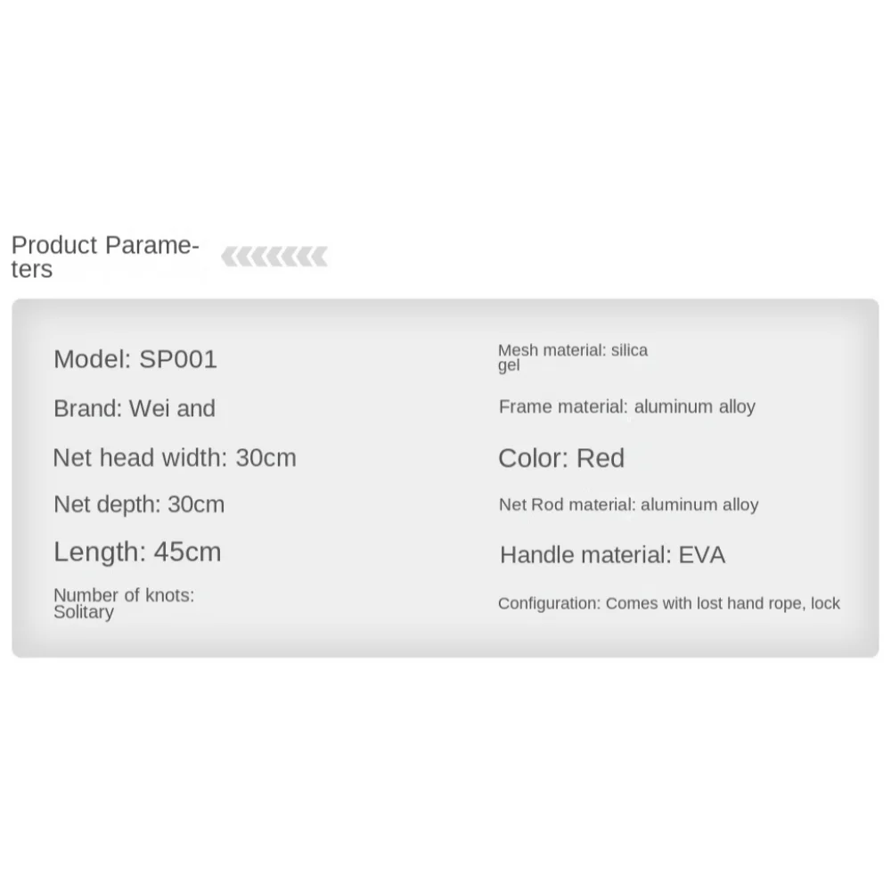 Nota: Enjuague bien con agua dulce después de su uso.Habrá un pequeño error en la medición del tamaño y el peso, y los productos producidos en diferentes lotes serán ligeramente diferentes, lo que no afectará el uso normal del producto. Aleación de aluminio ultraligera: la red está hecha de aleación de aluminio ultraligera, lo que la hace fácil de transportar y usar durante largos períodos de tiempo.