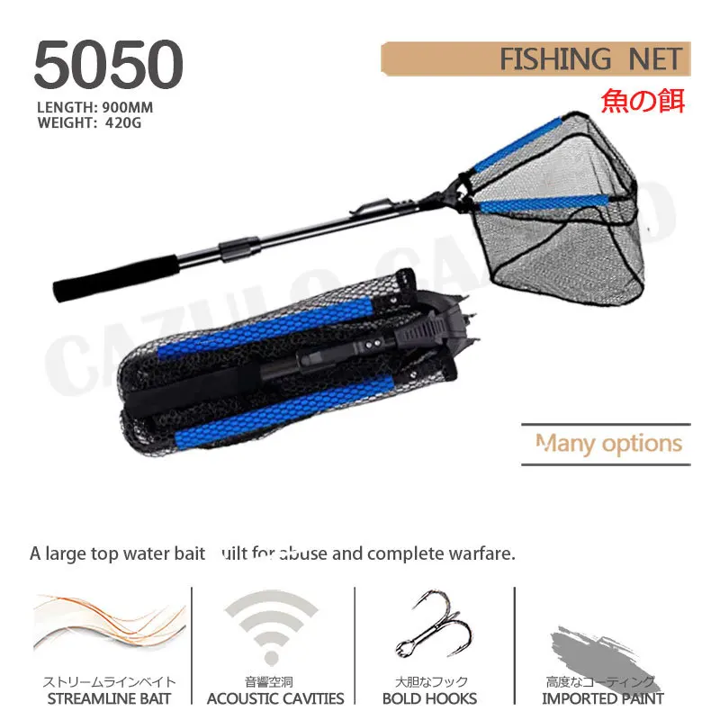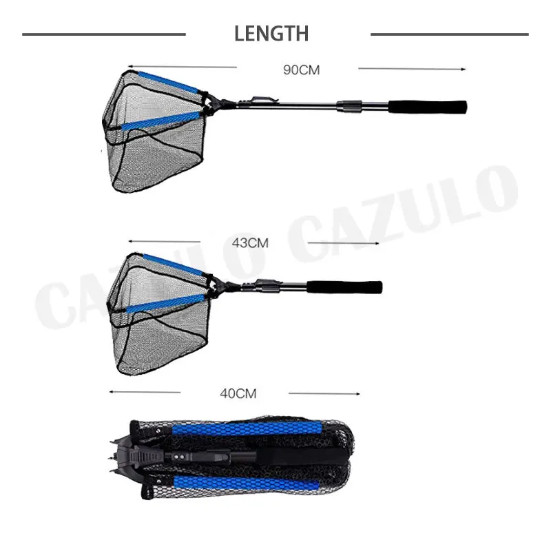Red de pesca portátil ultraligera, redes flotantes plegables, mango de poste telescópico, mango de goma Eva para volar al aire libre, aparejos de pesca