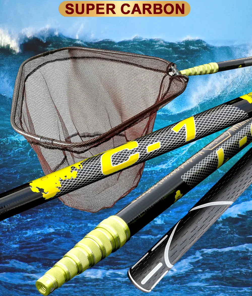 Red de pesca plegable JOSBY, poste de carbono de 2,1 m, 4m, ultraligero, retráctil, telescópico, Red de aterrizaje, equipo de red de pesca