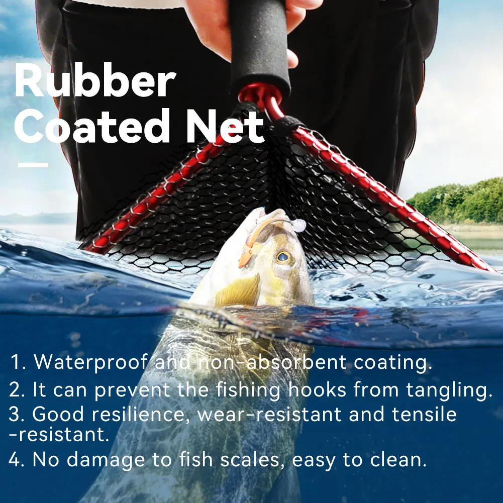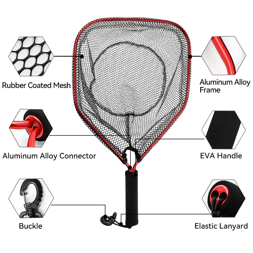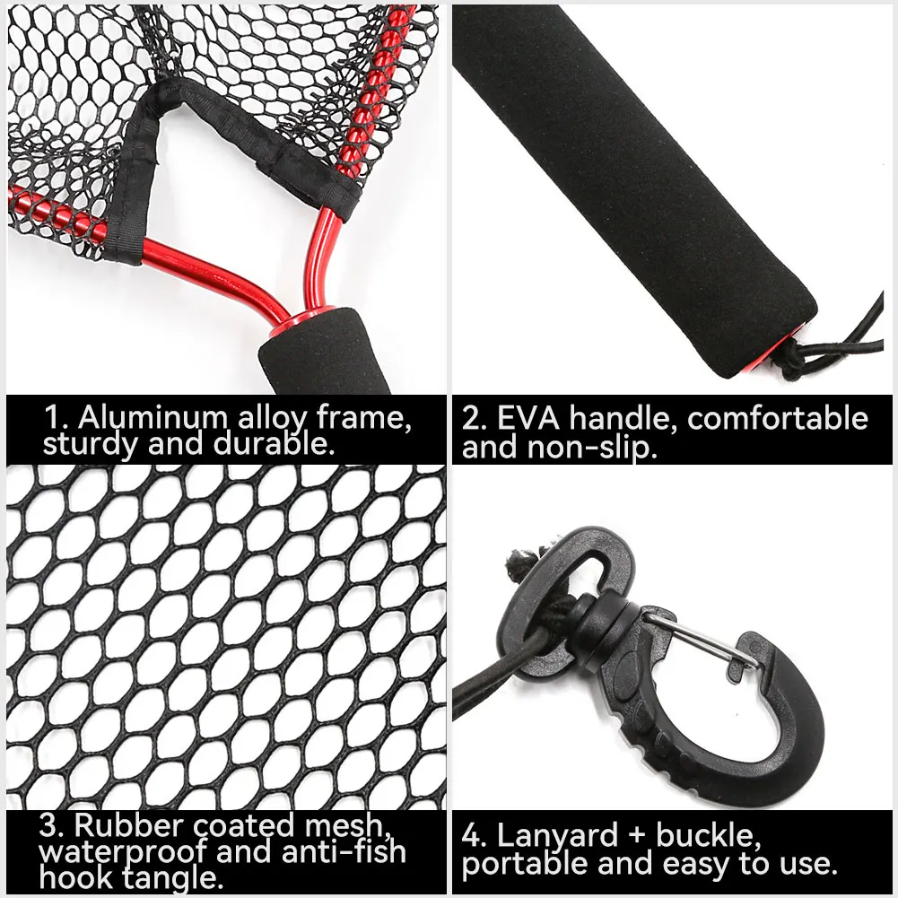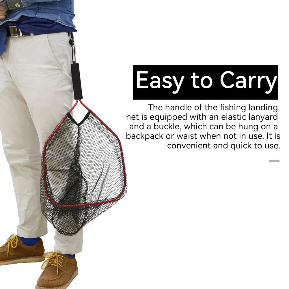 Red de pesca SANLIKE Mango de EVA de malla recubierta de goma duradero con correa elástica para atrapar y soltar fácilmente Accesorios de pesca