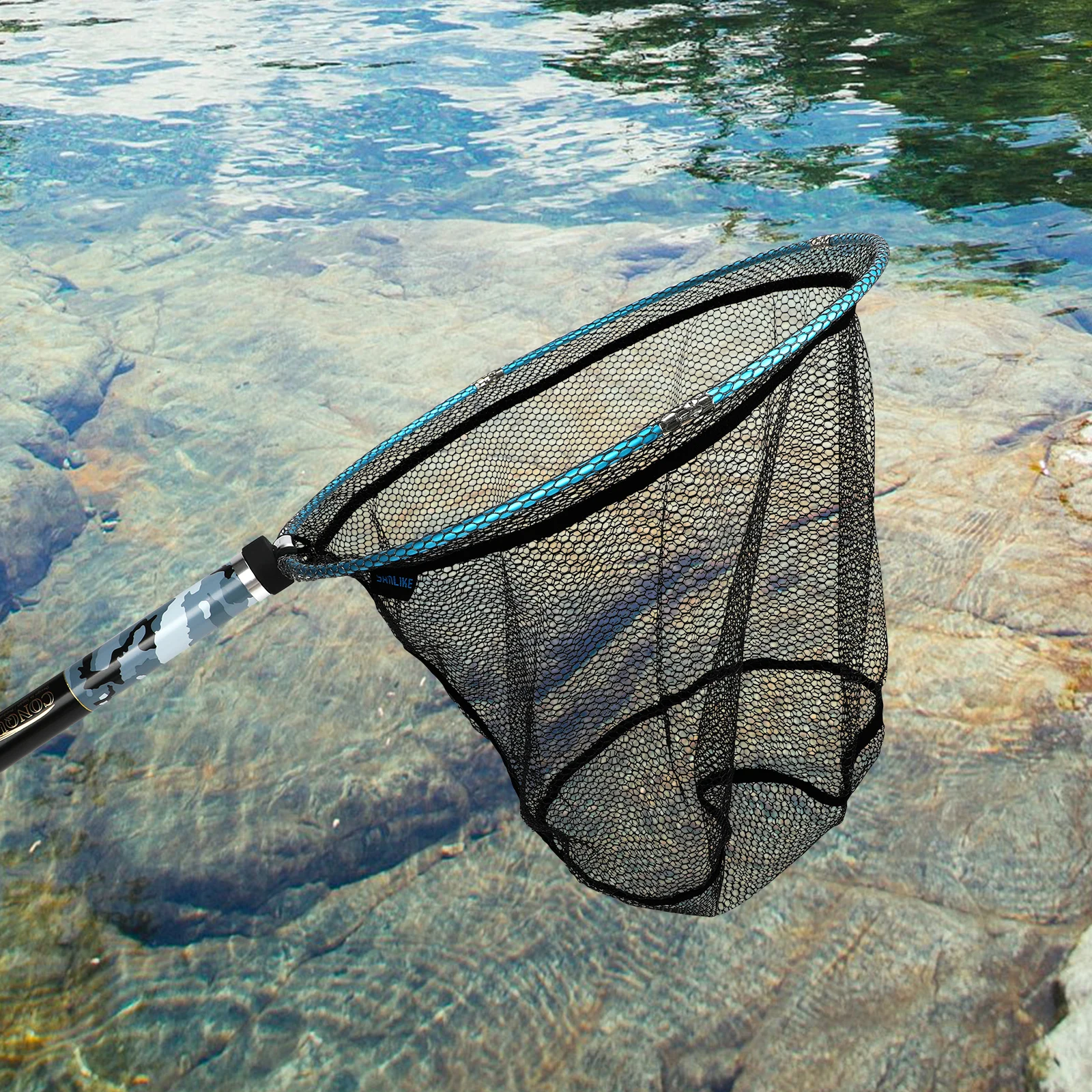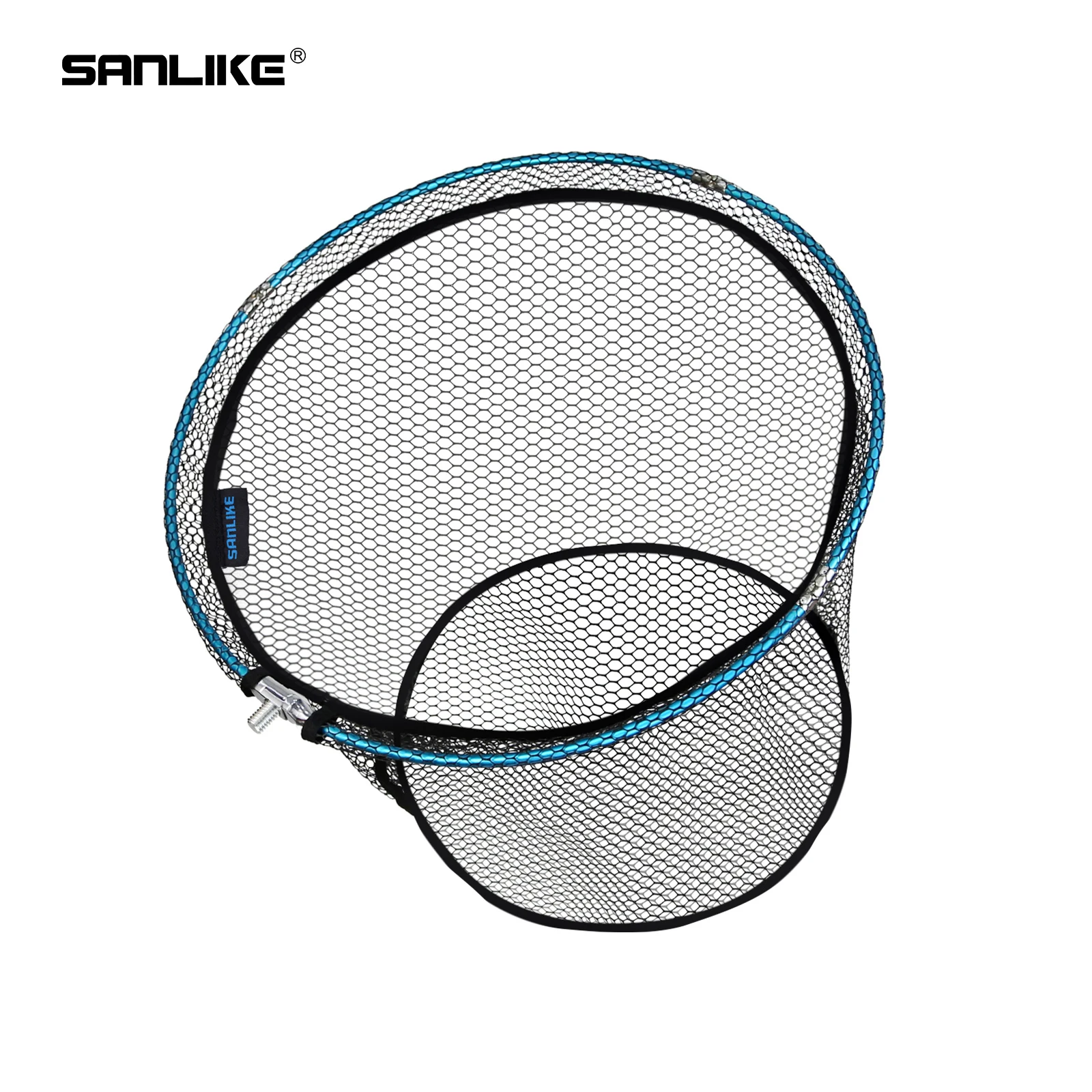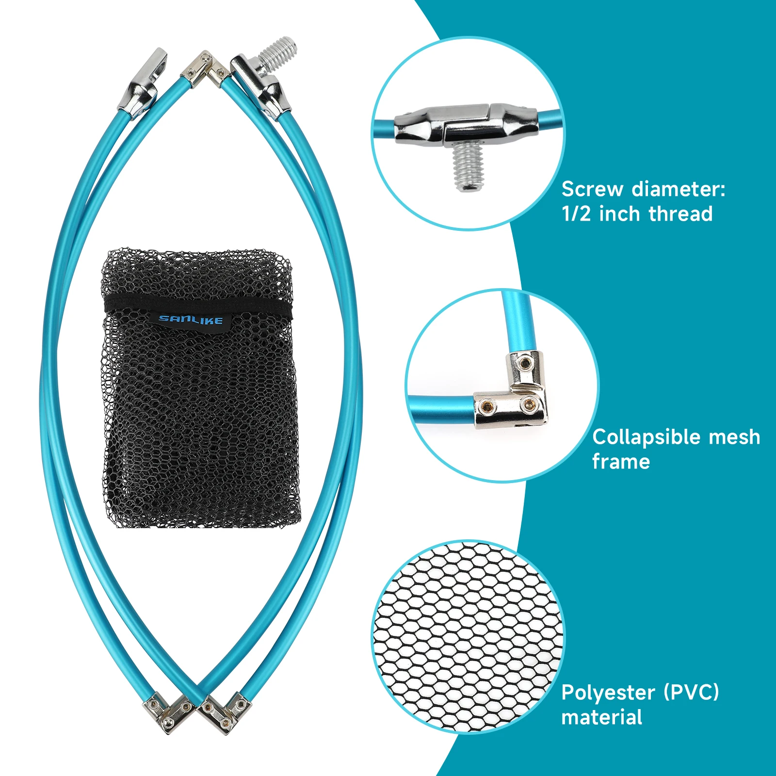 SANLIKE-Red de pesca plegable con revestimiento negro, malla de inmersión, mango portátil, red de aterrizaje, marco de aluminio, aparejos de pesca
