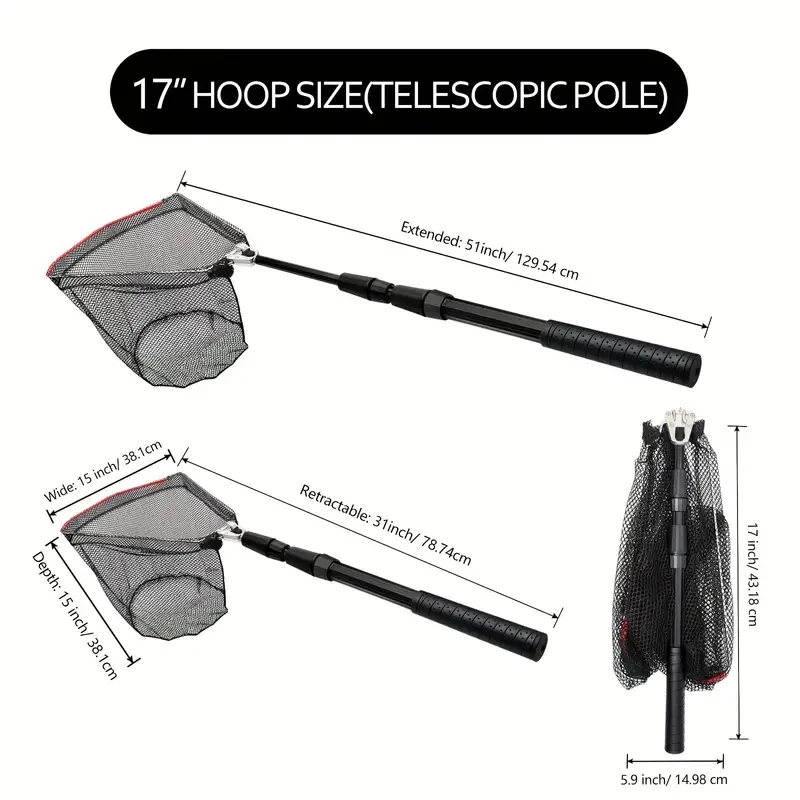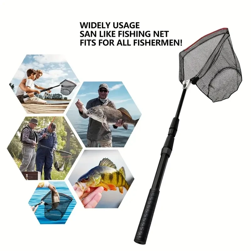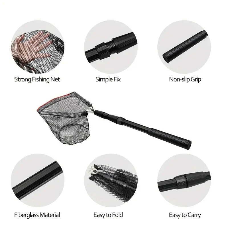 Red de pesca telescópica plegable, mango resistente para agua salada y dulce, accesorios de aparejos de pesca