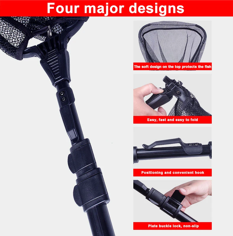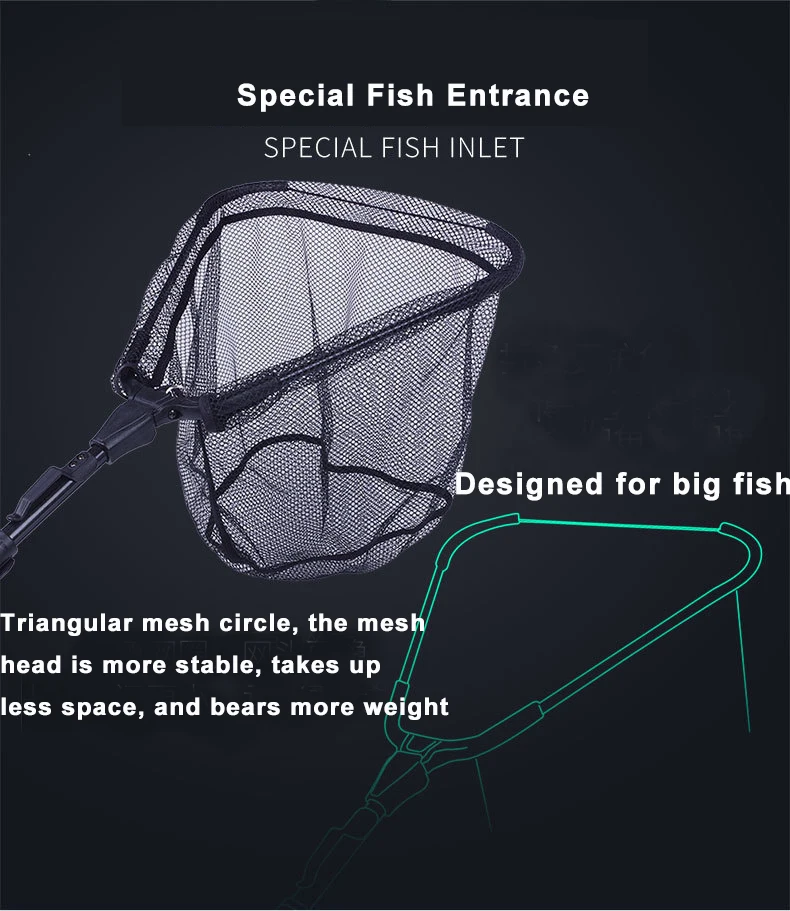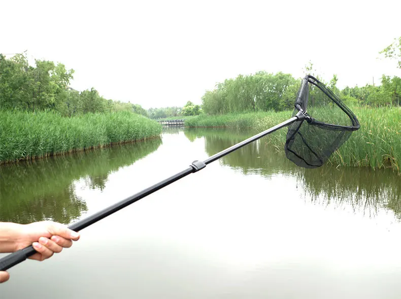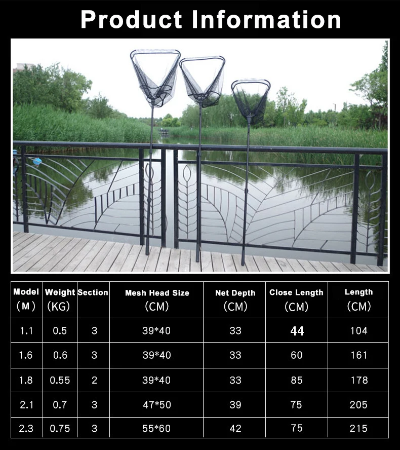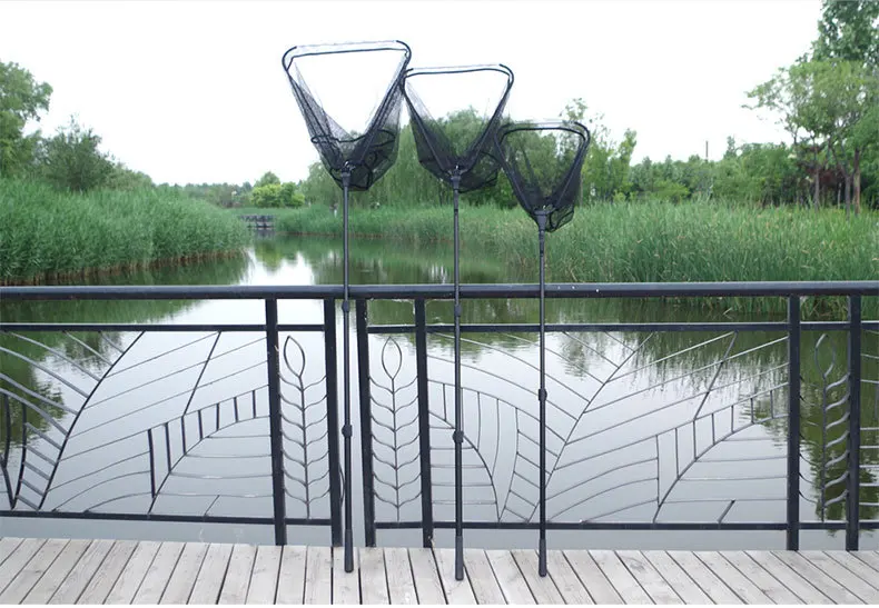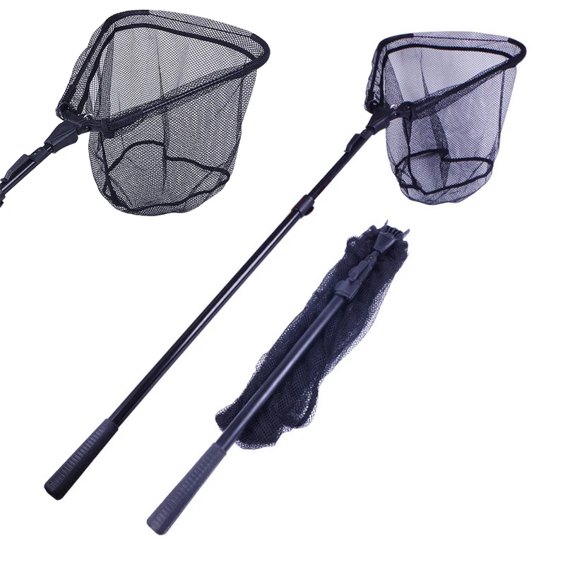Red de pesca triangular portátil, 1,1 M, 1,6 M, 1,8 M, 2,1 M, 2,3 M, caña plegable de aleación de aluminio, Red de mano de nailon, accesorios de aparejos de pesca