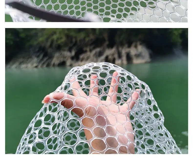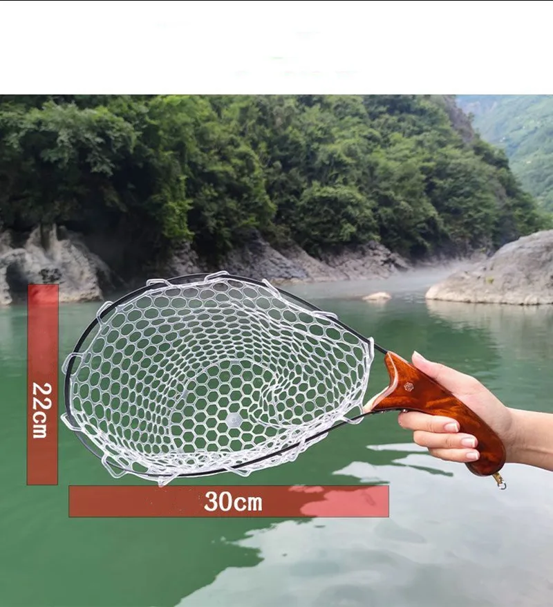Red portátil de mano para pesca con mosca, señuelo plegable con mango de madera maciza, para exteriores