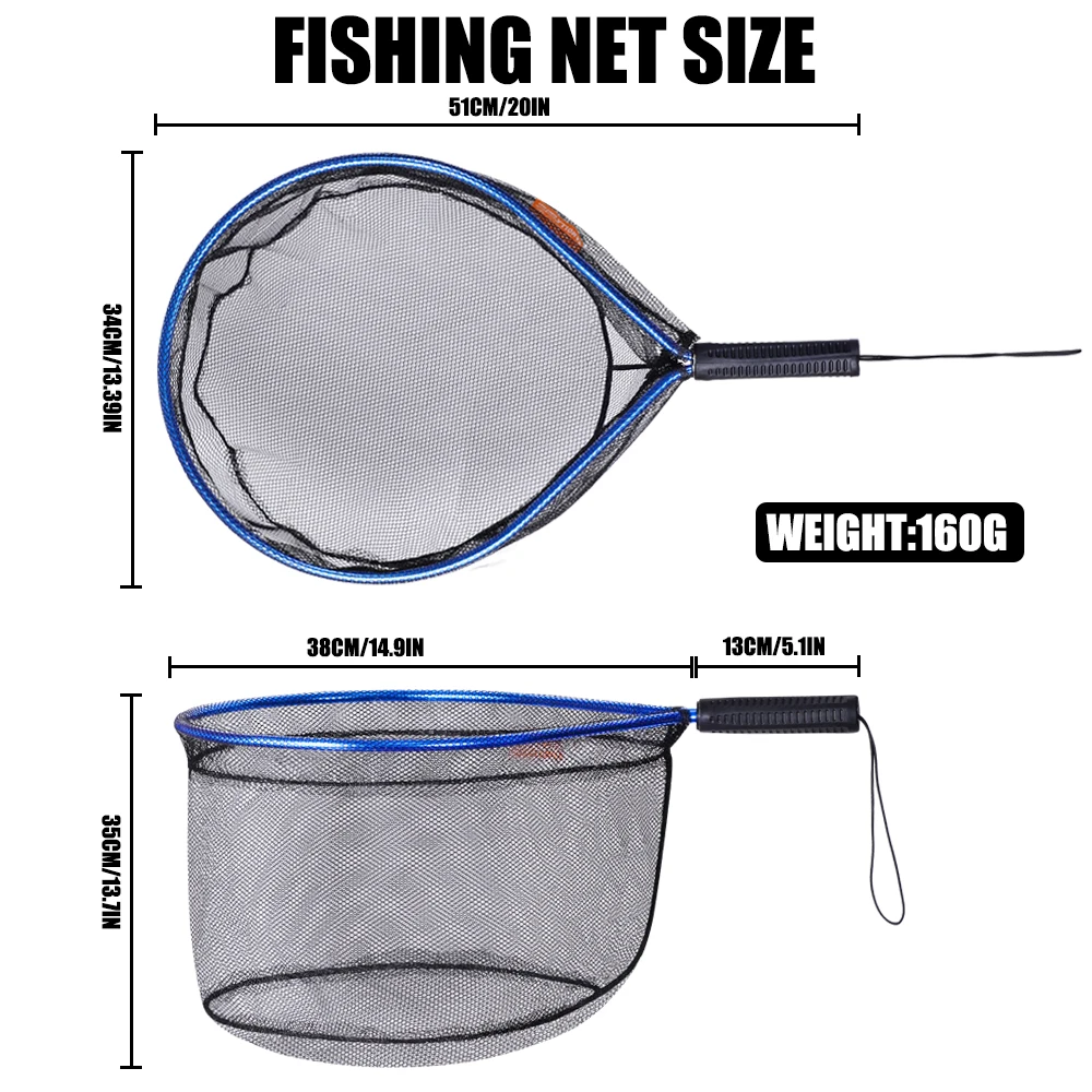 Redes de pesca de mano portátiles, ultraligeras, aleación de aluminio, resistentes al desgaste, malla de fundición, accesorios para barcos de pesca con mosca