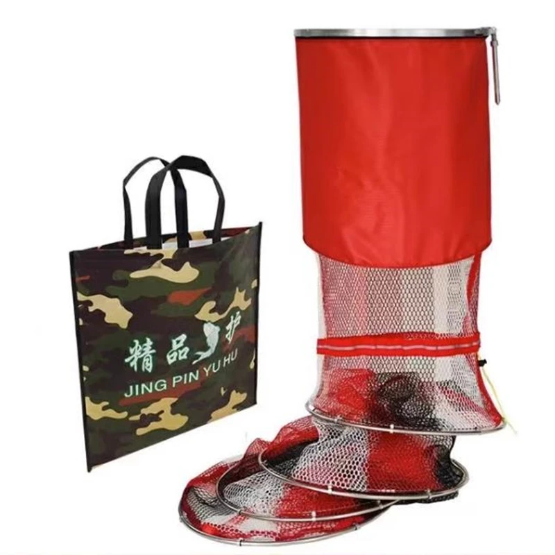 Red de pesca portátil Almacenamiento de peces Accesorios de pesca Anillo de acero Jaula de peces plegable Trampa de pesca Red Cesta de peces Aparejos