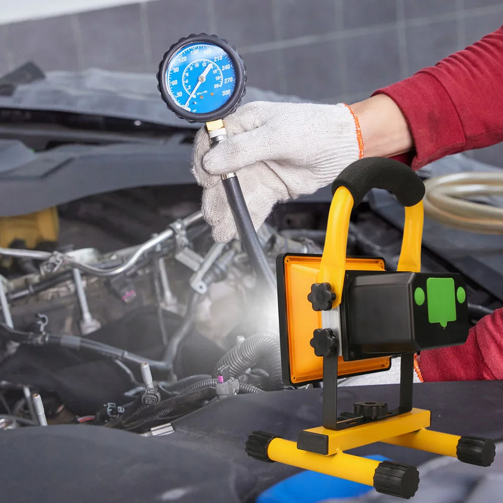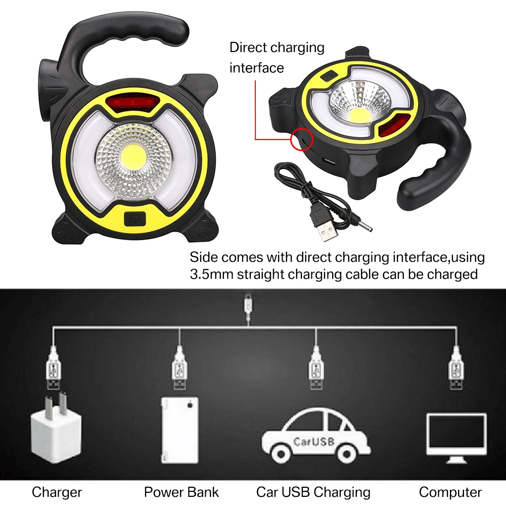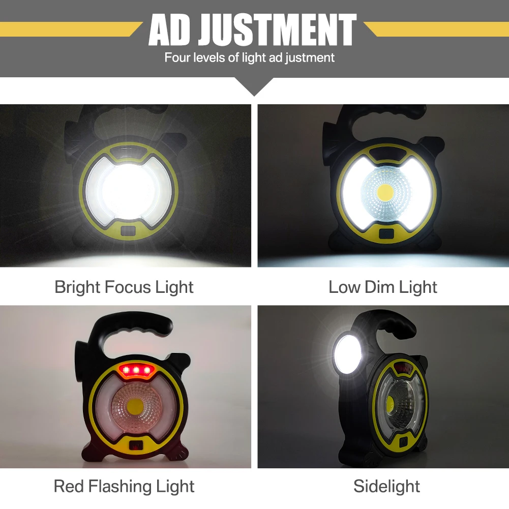 Portátil y flexible: luz de trabajo portátil y ligera, colgada en el camión o de mano. Incluso en el suelo, en el sótano, garaje o jardín por la noche. Las perillas ajustables también le brindan la capacidad de girar la luz hasta 90 grados verticalmente y 360 grados en el eje, cumplen con más requisitos.