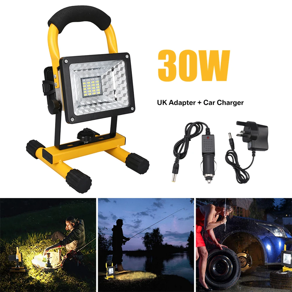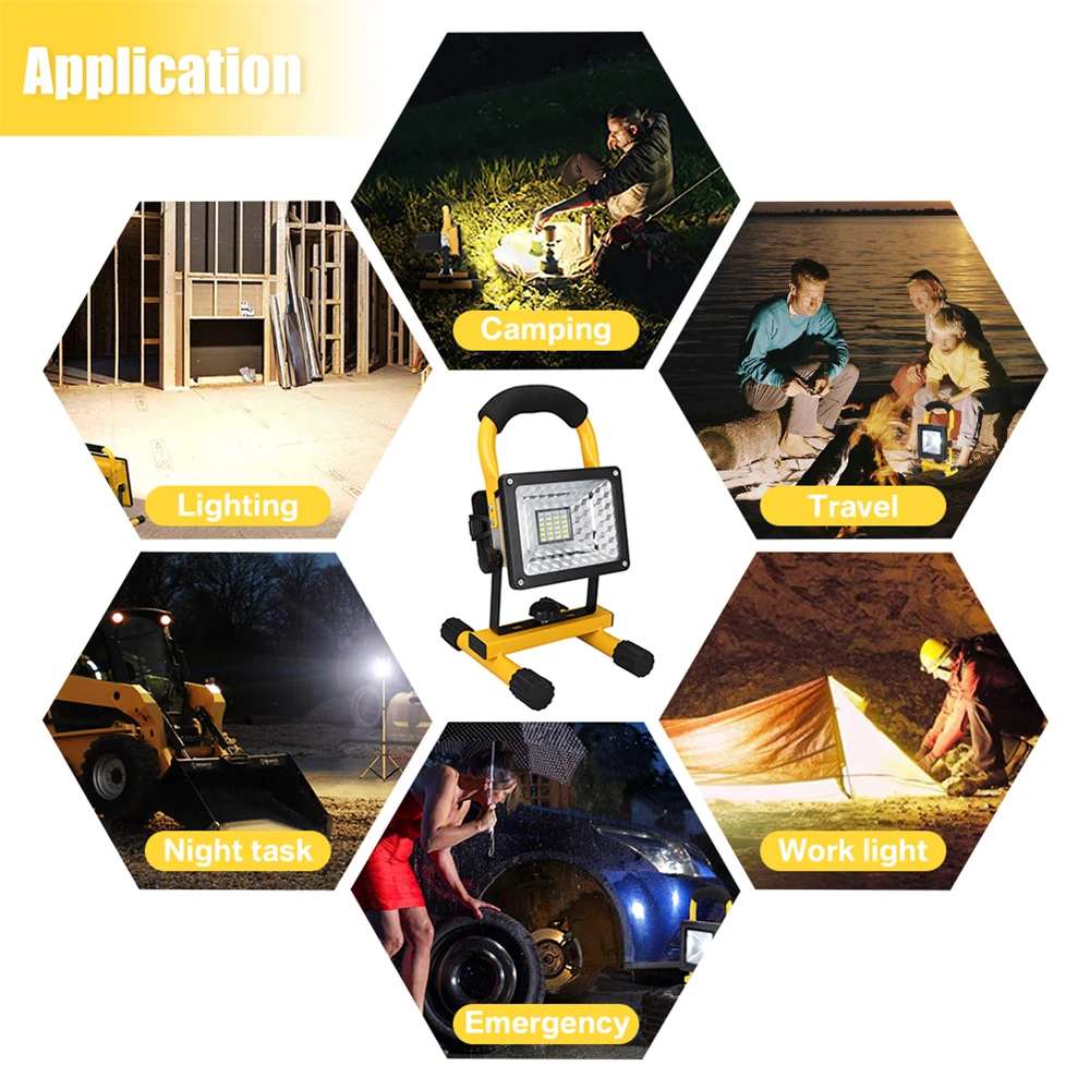 Brillo extremo y ahorro de energía: luces de trabajo LED súper brillantes recargables, 24/64 LED con 3 niveles de brillo. Puede ajustar el brillo de 30W a 15W cambiando según los requisitos de las diferentes condiciones. Reemplace la bombilla halógena tradicional de 500W por 30W COB LED y 80% menos facturas de electricidad para iluminación.