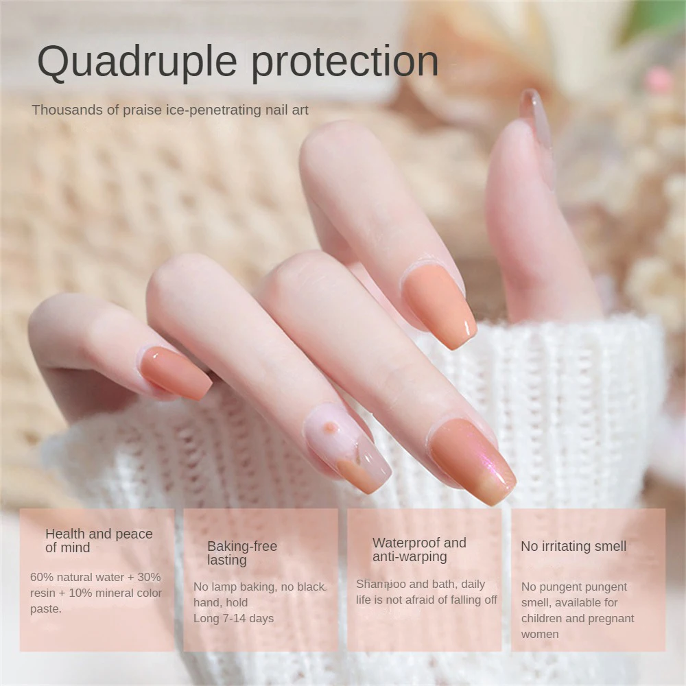 3. Fácil de quitar: sumerja sus dedos en agua tibia durante un período de tiempo, y puede arrancar fácilmente el esmalte de uñas. No se requiere quitaesmalte de uñas.