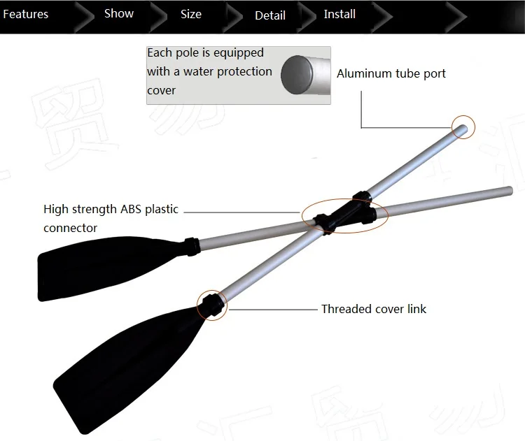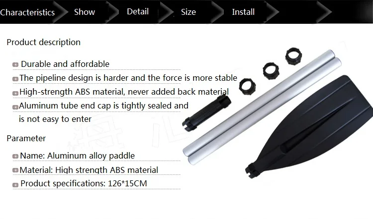 Lodo de barco de aleación de aluminio, adecuado para una variedad de usos de barco, se puede plegar y es fácil de llevar, la longitud se puede autorregular con facilidad; también se puede combinar para la pulpa de doble cabezal Oh, es adecuado para canoa, barco competitivo.
