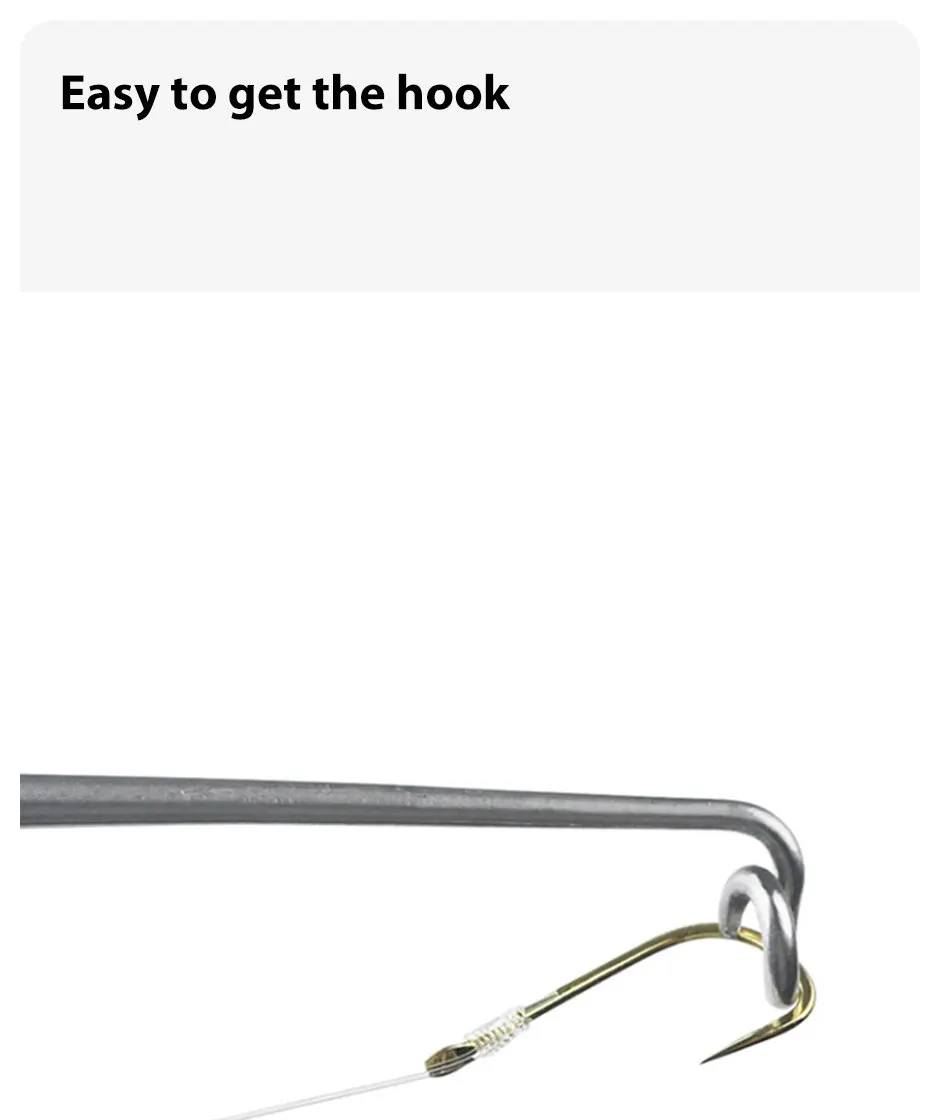 • Material Acero inoxidable :Hecho de acero inoxidable duradero, este removedor de anzuelo está construido para durar y soportar el desgaste del uso frecuente.