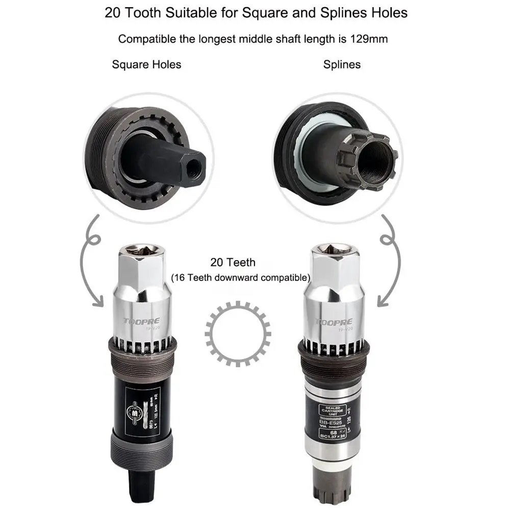 Nuevo con alta calidad Nombre: herramienta de soporte inferior de bicicleta Material: acero de alto carbono Especificación: 20 dientes Estilo: herramienta de eliminación/Herramienta antiapagado/juegos de herramientas Aplicación: eje cuadrado/eje estriado Peso neto: Herramienta de manga alrededor de 128g Peso neto: Herramienta anti-apagado alrededor de 63g Cantidad: 1 pieza o 1 Juego a su elección Característica: * Actualización, Acero de alto carbono, mayor dureza, resistencia al desgaste, larga vida útil * El diseño profesional anti-apagado hace que el eje inferior no se caiga fácilmente, lo que hace que la instalación sea más firme y conveniente * Alta compatibilidad, 20 dientes, compatible hacia abajo con 16 ranuras para dientes, Y el más largo compatible con el soporte inferior de 129mm * Se ha mejorado la forma de los dientes y las ranuras, protegiendo el soporte inferior, no es fácil de romper * Se utiliza en el eje cuadrado y el Eje estriado. El paquete incluye: 1 pieza o 1 juego de herramientas de soporte inferior de bicicleta (a su elección) Aviso: 1,1 cm=10mm=0,39 pulgadas. 2. Permita un error de 1-2MM debido a la medición manual y asegúrese de que no le importe antes de realizar el pedido. 3. Por favor, comprenda que los colores pueden existir aberraciones cromáticas debido a la diferente colocación de las imágenes.