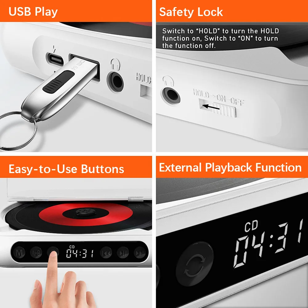【Supports Multiple Audio Formats】: This CD player supports a variety of audio formats, including CD, CD-R, CD-RW, MP3, and WMA. This ensures that you can enjoy your favorite music, no matter the format.