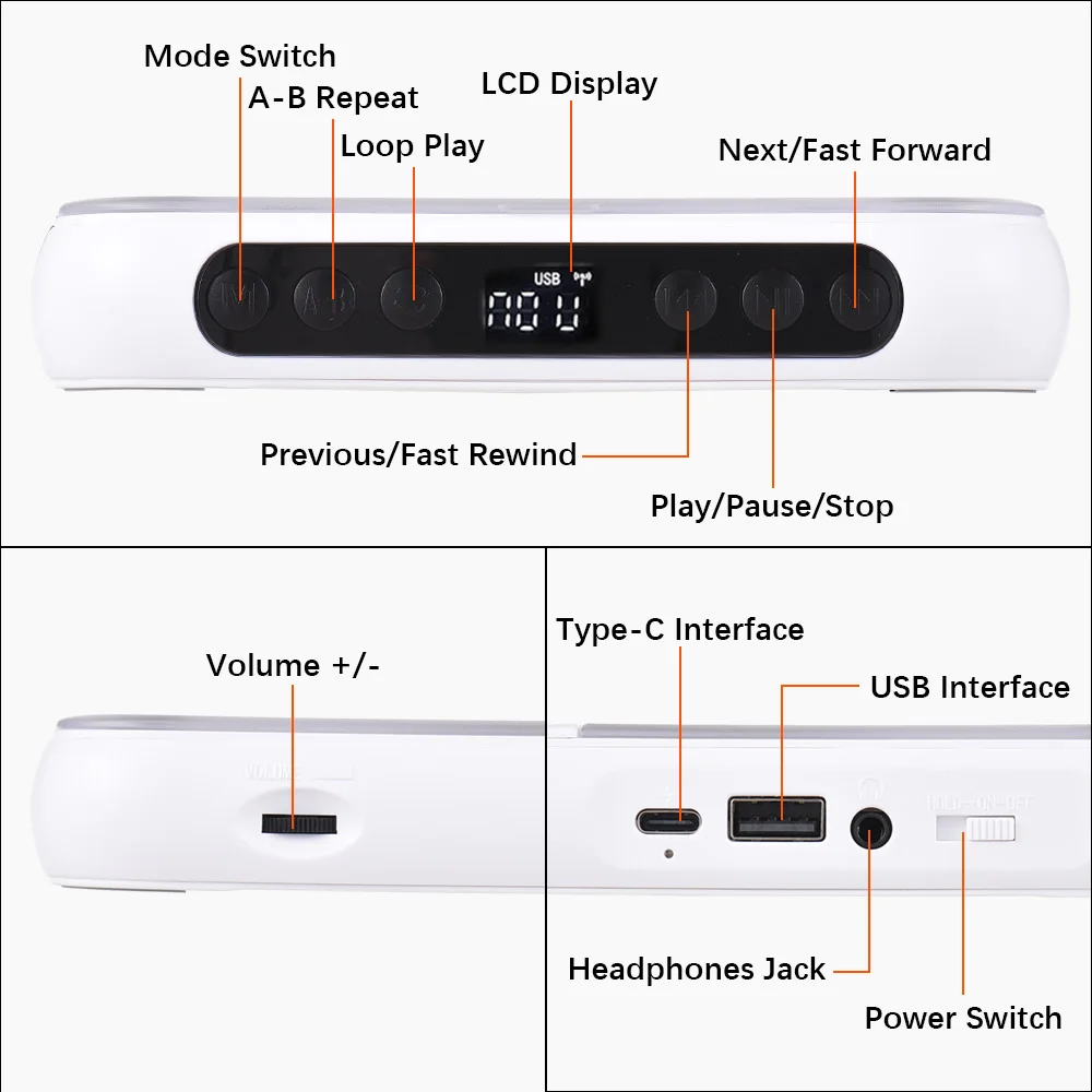 【Easy Control with LED Display】: The CD player features an LED display and easy-to-use buttons for effortless control. It also includes a repeat function that allows you to set a specific start (A) and end (B) point for a segment of music to be repeated.