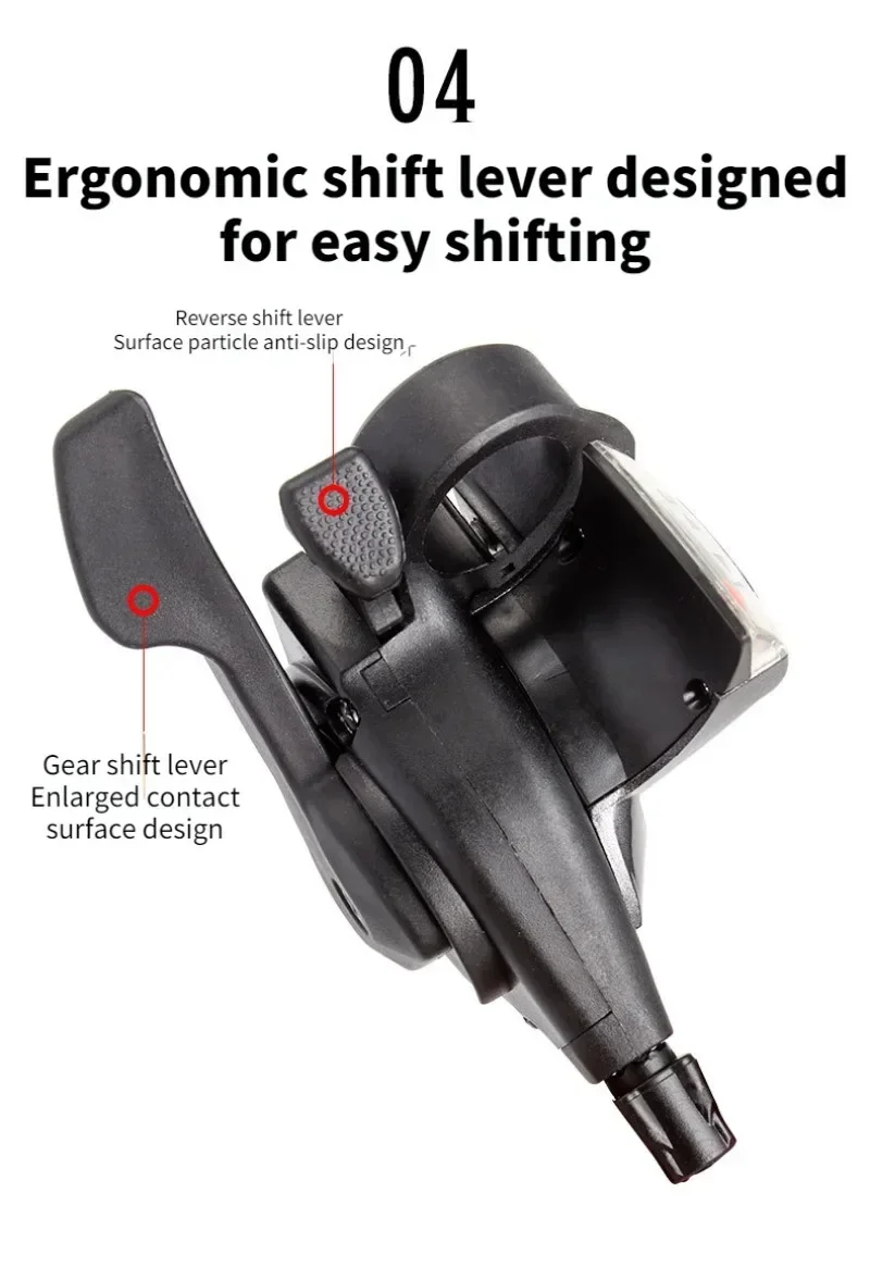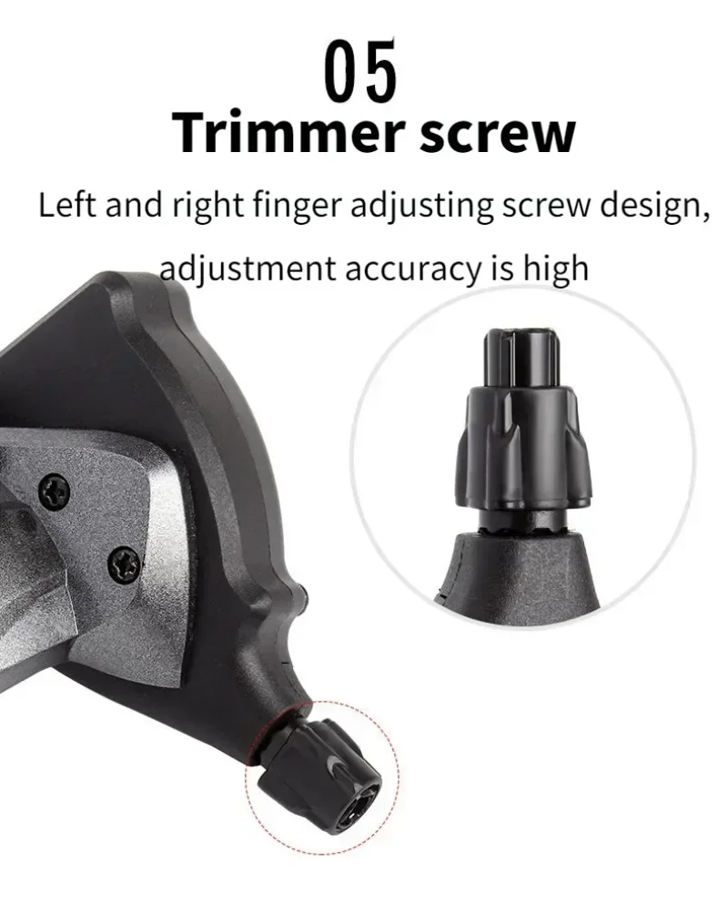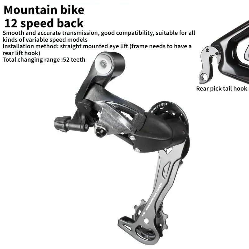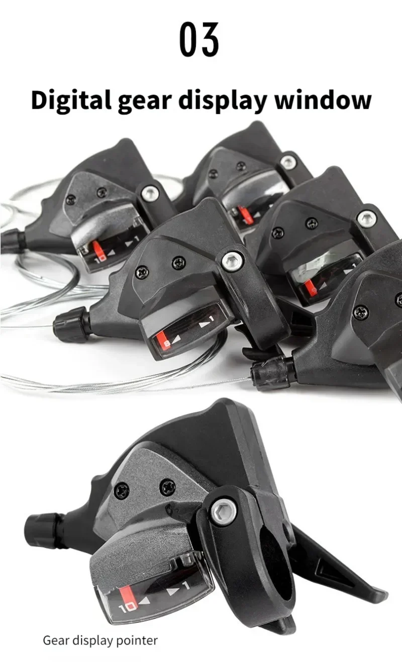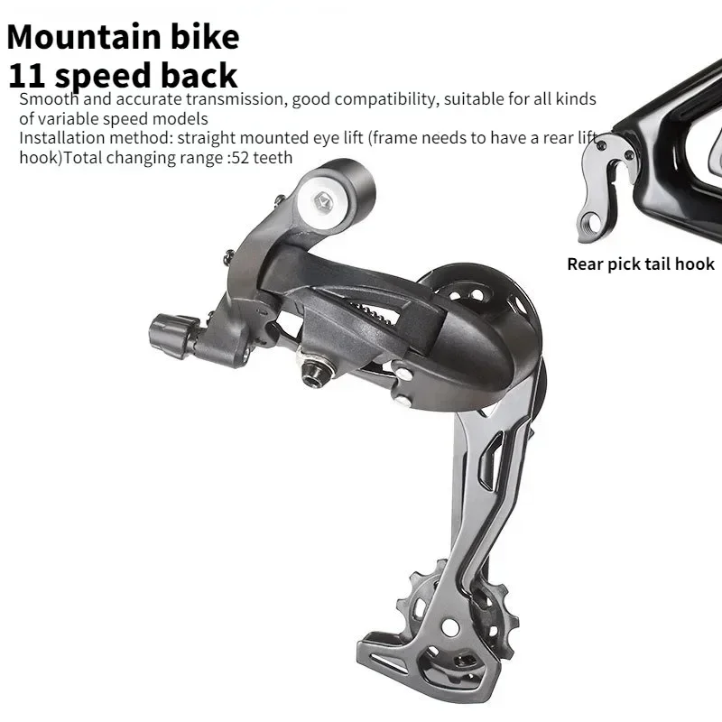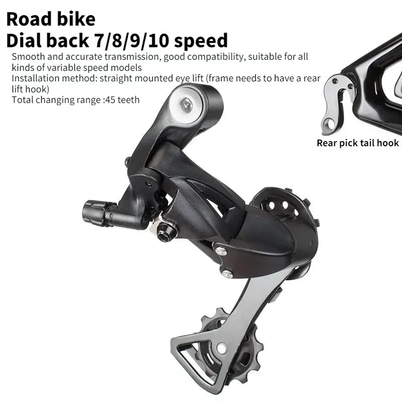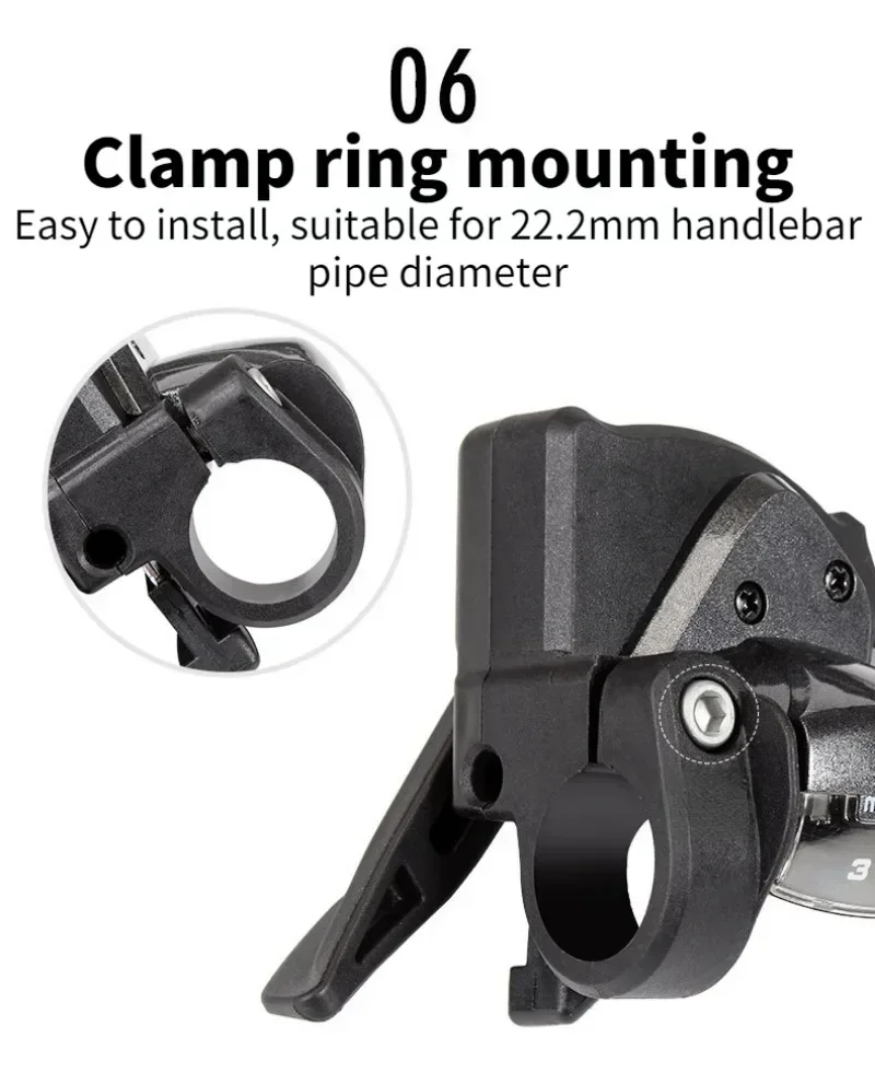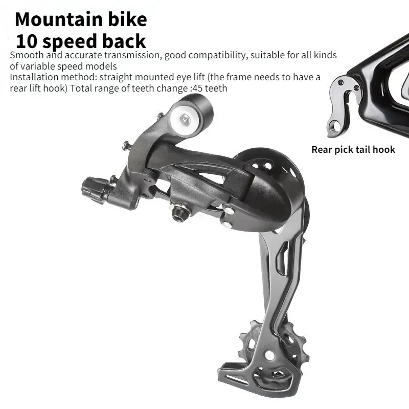 Nombre de marca:Jooyoo Nombre del producto:Transmisión de bicicletas Material principal:Acero plástico Longitud:10,5 cm Peso:0,13 kg Tamaño del producto:10,5*7*7cm Características: Adaptabilidad:Tiene una variedad de velocidades 7/8/9/10/11, etc. Características:Peso ligero, alta resistencia, sensible a la velocidad, ligero y suave. Uso:El diseño de la palanca es ergonómico y fácil de cambiar.Tornillo fino, alta precisión de ajuste. Instalación:Instalación del anillo de abrazadera, instalación fácil y rápida.