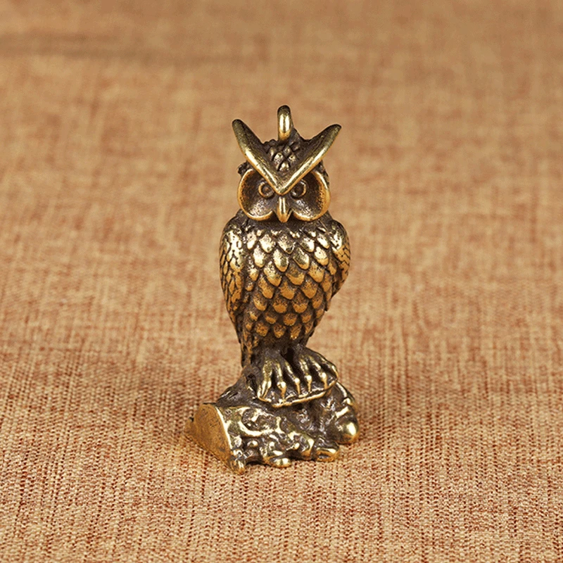 Retro cobre Animal té mascota Retro latón búho adornos estatuas en miniatura decoraciones de escritorio decoración artesanía llavero colgante