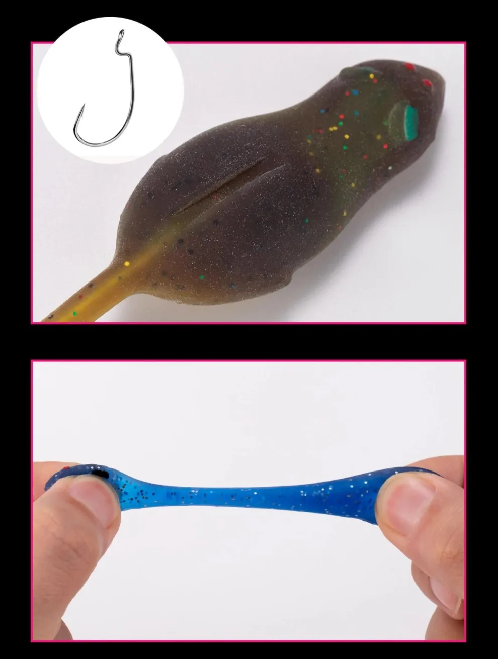 La cola se ve sólida y el señuelo flota.