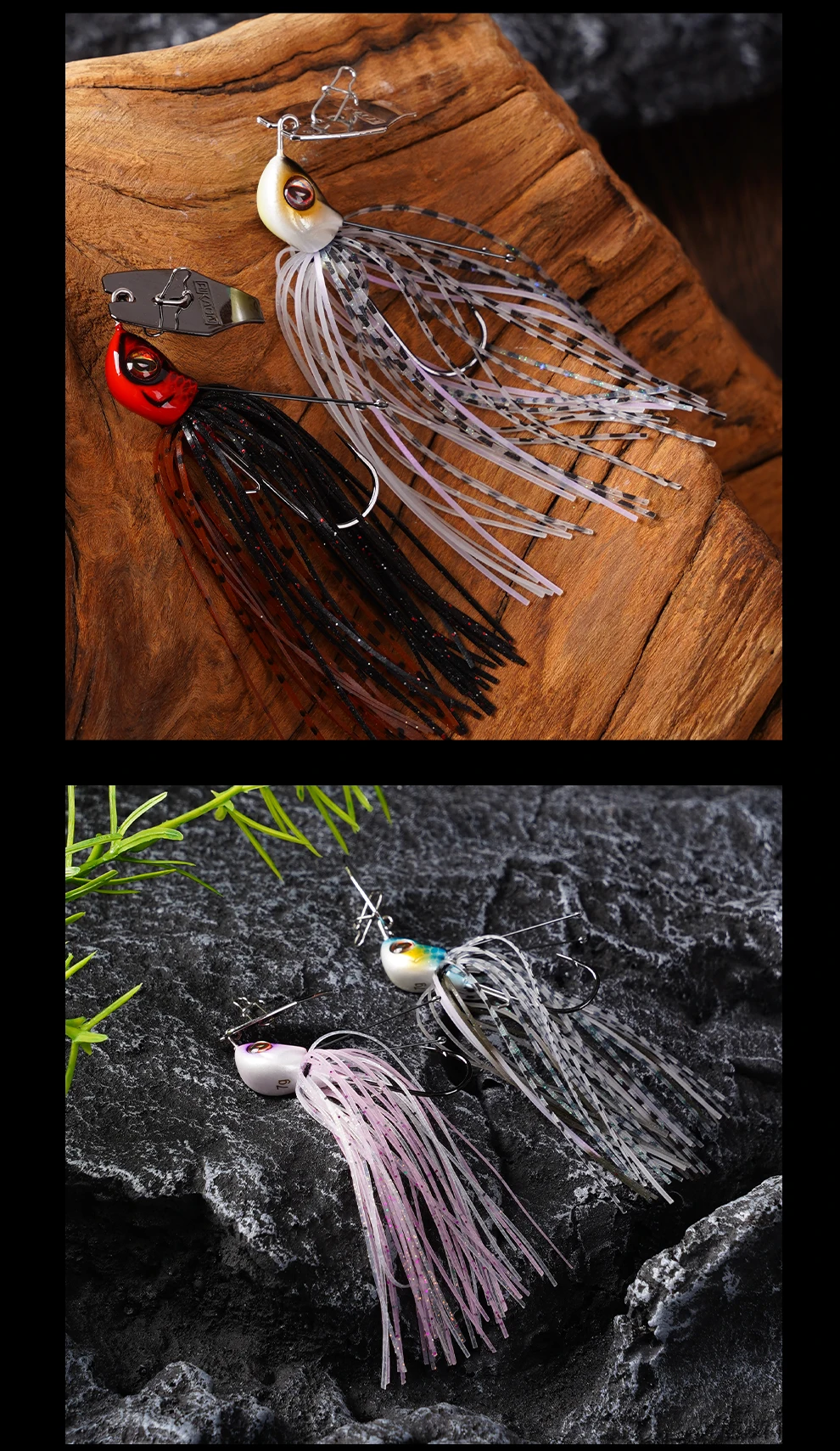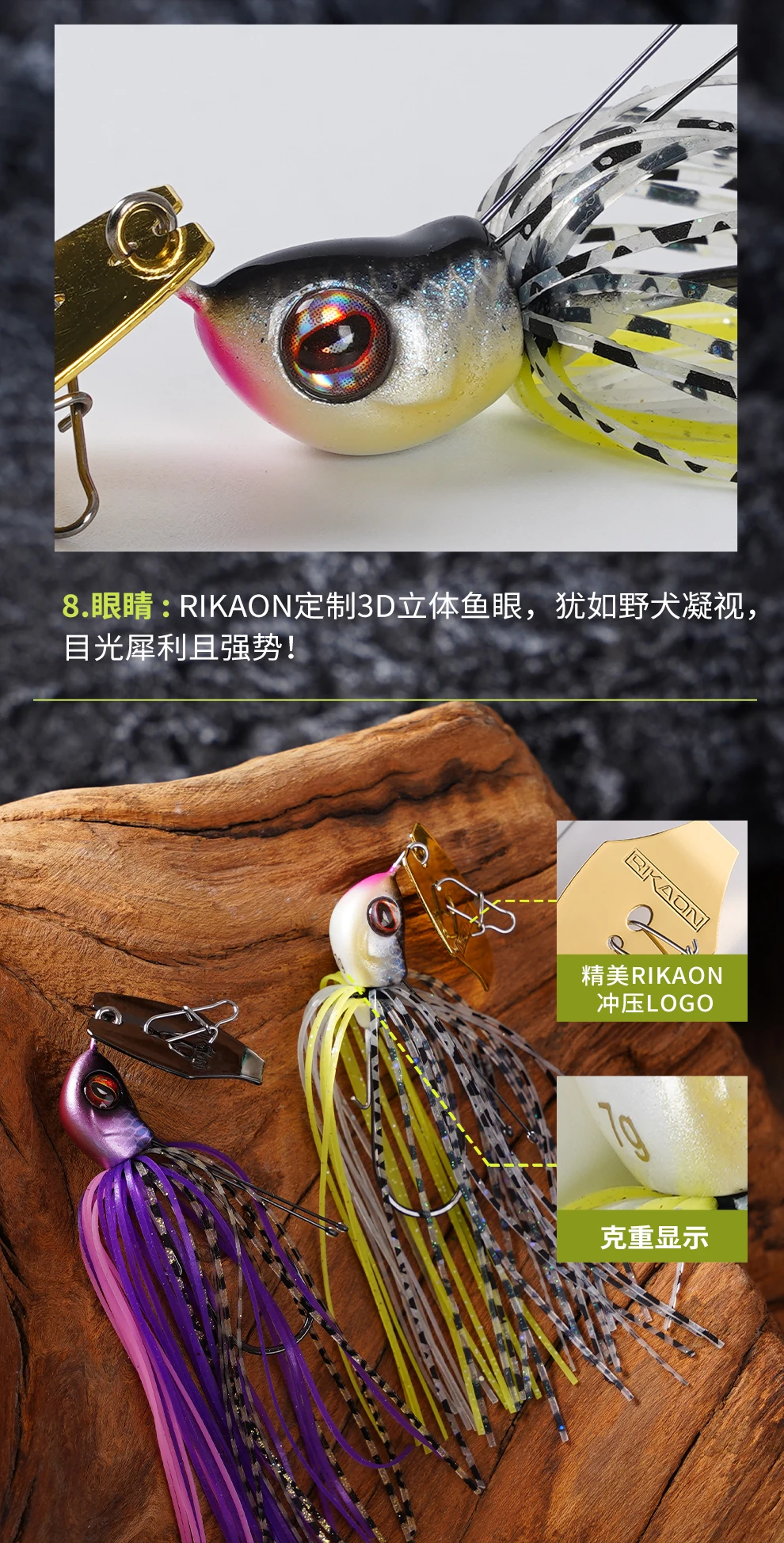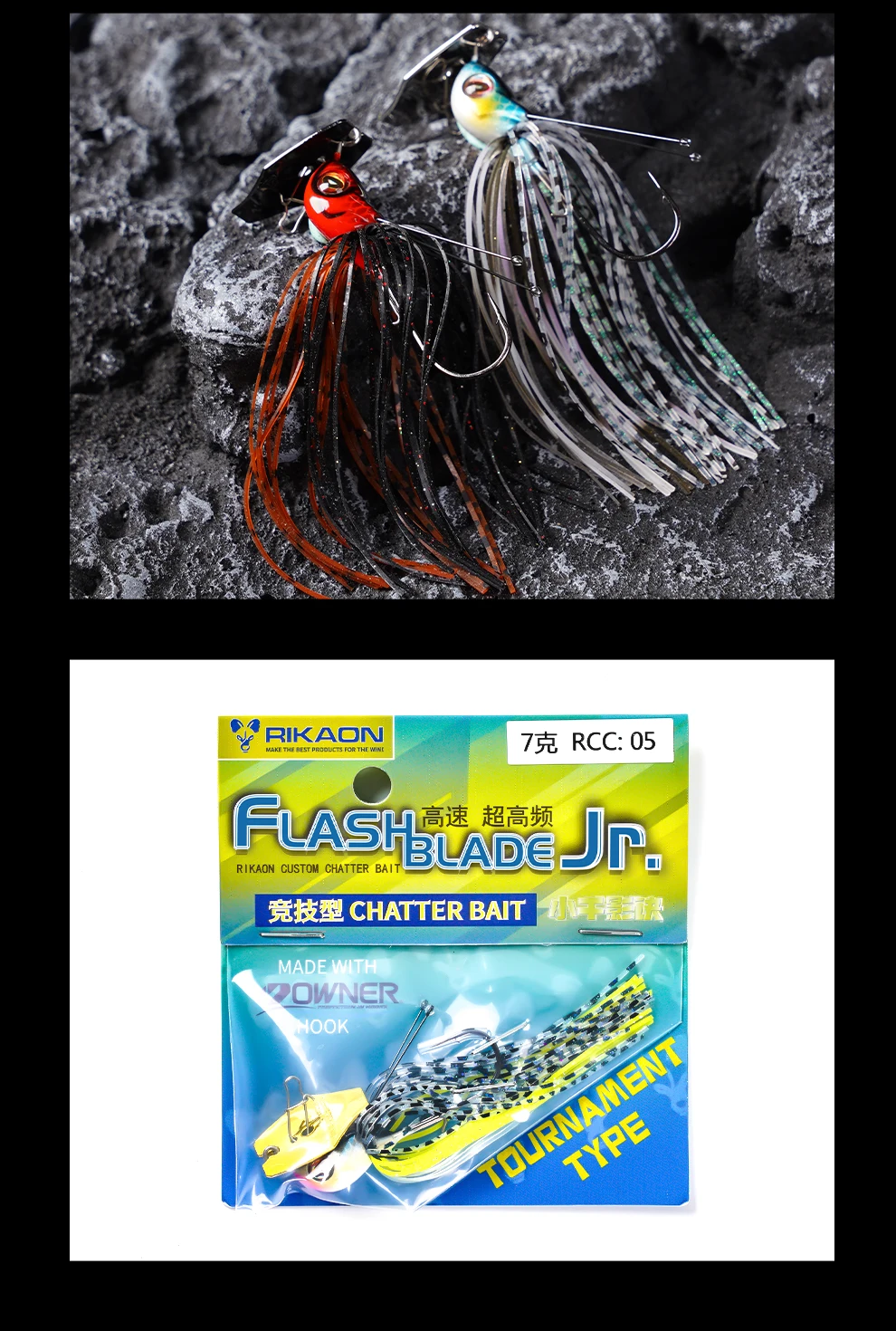 RIKAON Flash Blade Chatter Bait Ultra rápido vibrador JIG 7g/10g con 2 uds cable de aleación de titanio para lubina perca Pike