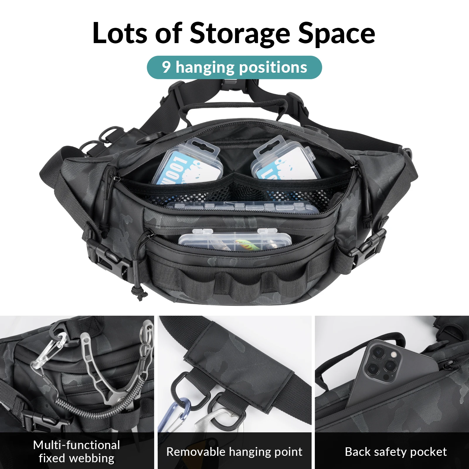 【Tela repelente al agua】 Riñonera para pesca de tuiz hecha de material de tela repelente al agua de alta calidad, resistente a la abrasión y al desgaste, evita salpicaduras de agua.Limpie el agua inmediatamente después del encuentro, no penetra en el interior del paquete.
