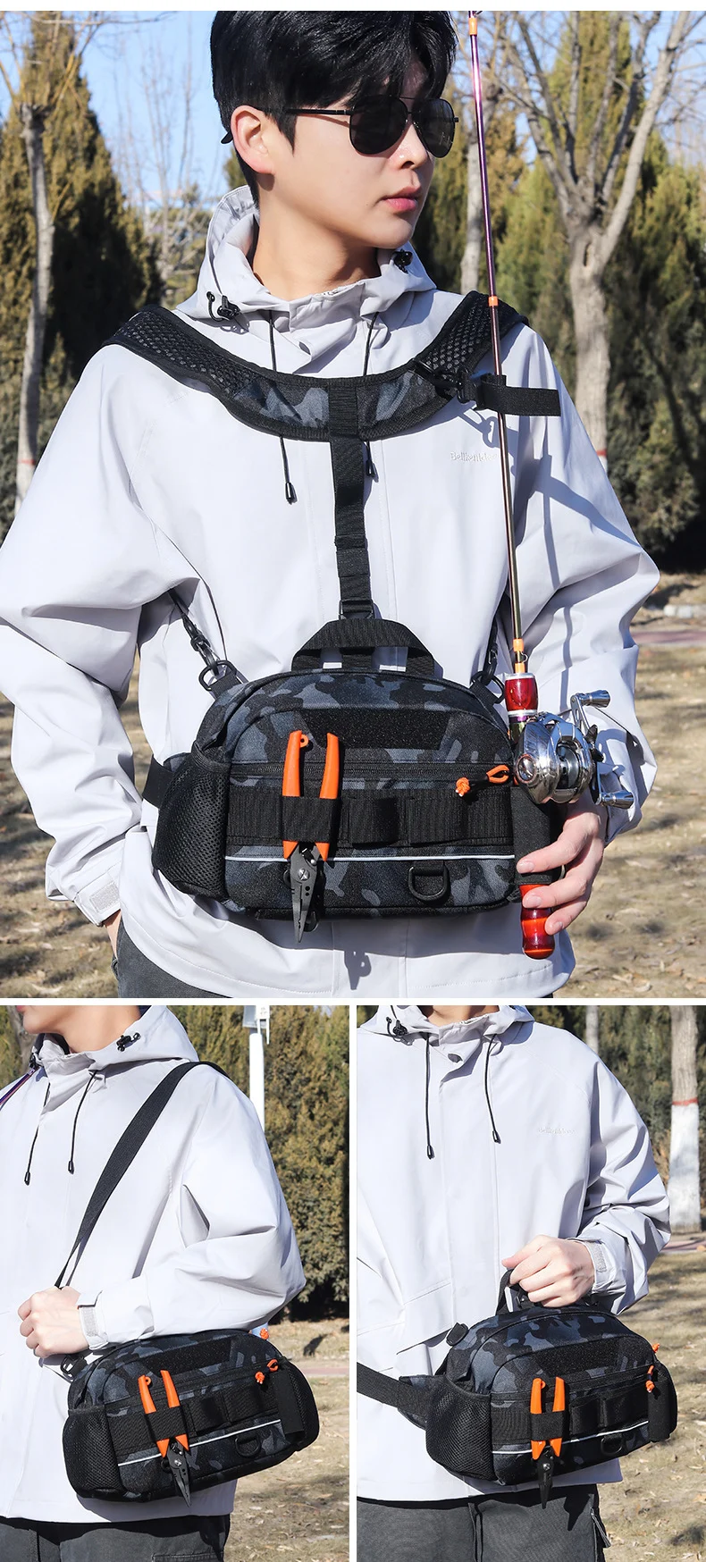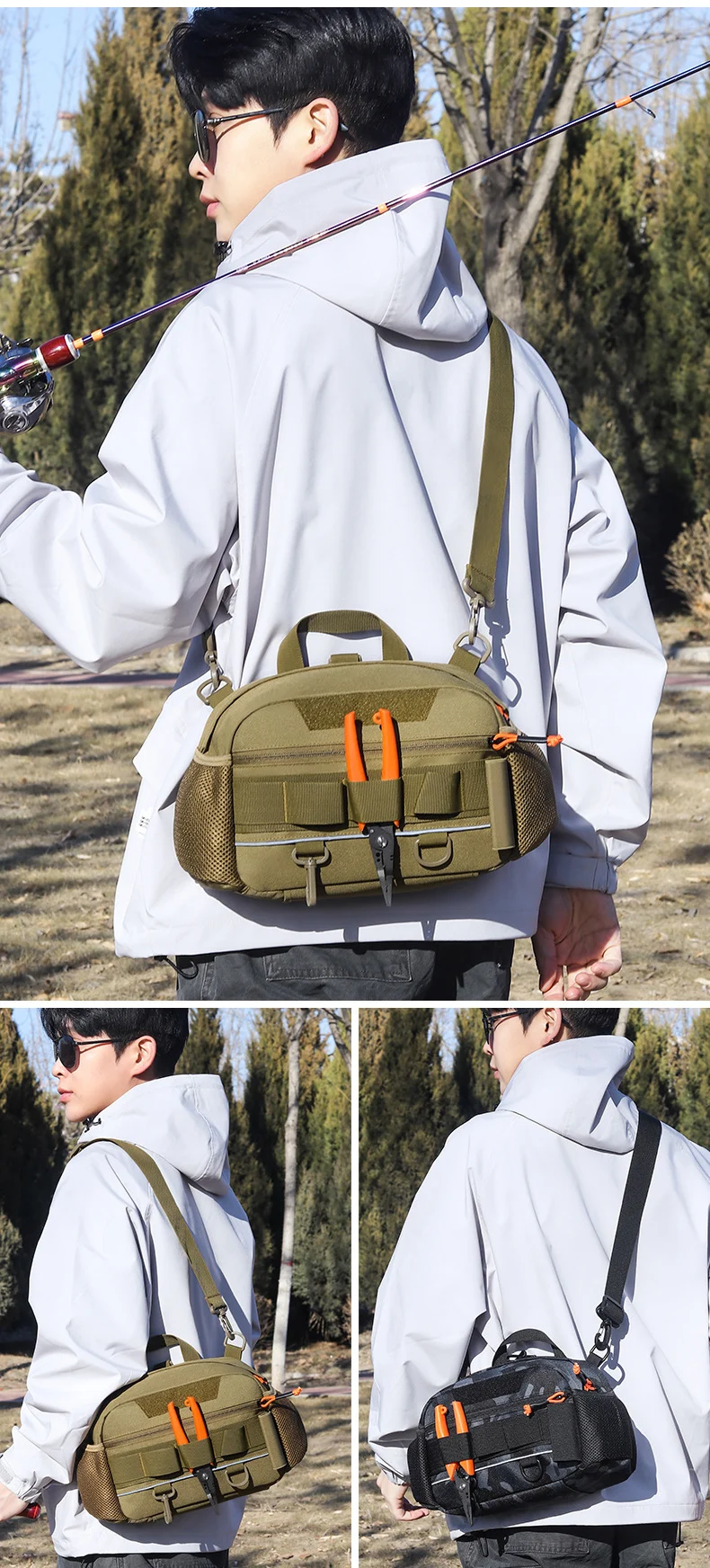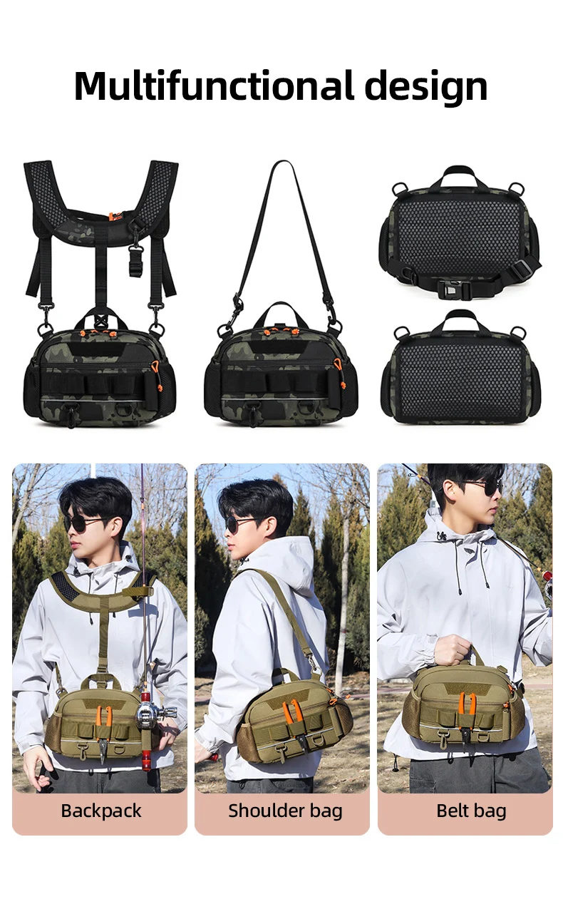 2. Bolsa de aparejos de pesca de diseño innovador: puede usar la bolsa de aparejos para una variedad de propósitos, como una bolsa de hombro tipo bandolera, una bolsa de caza, una bolsa de caminata, una bolsa de viaje, una caja de aparejos, una bolsa de camping, etc.