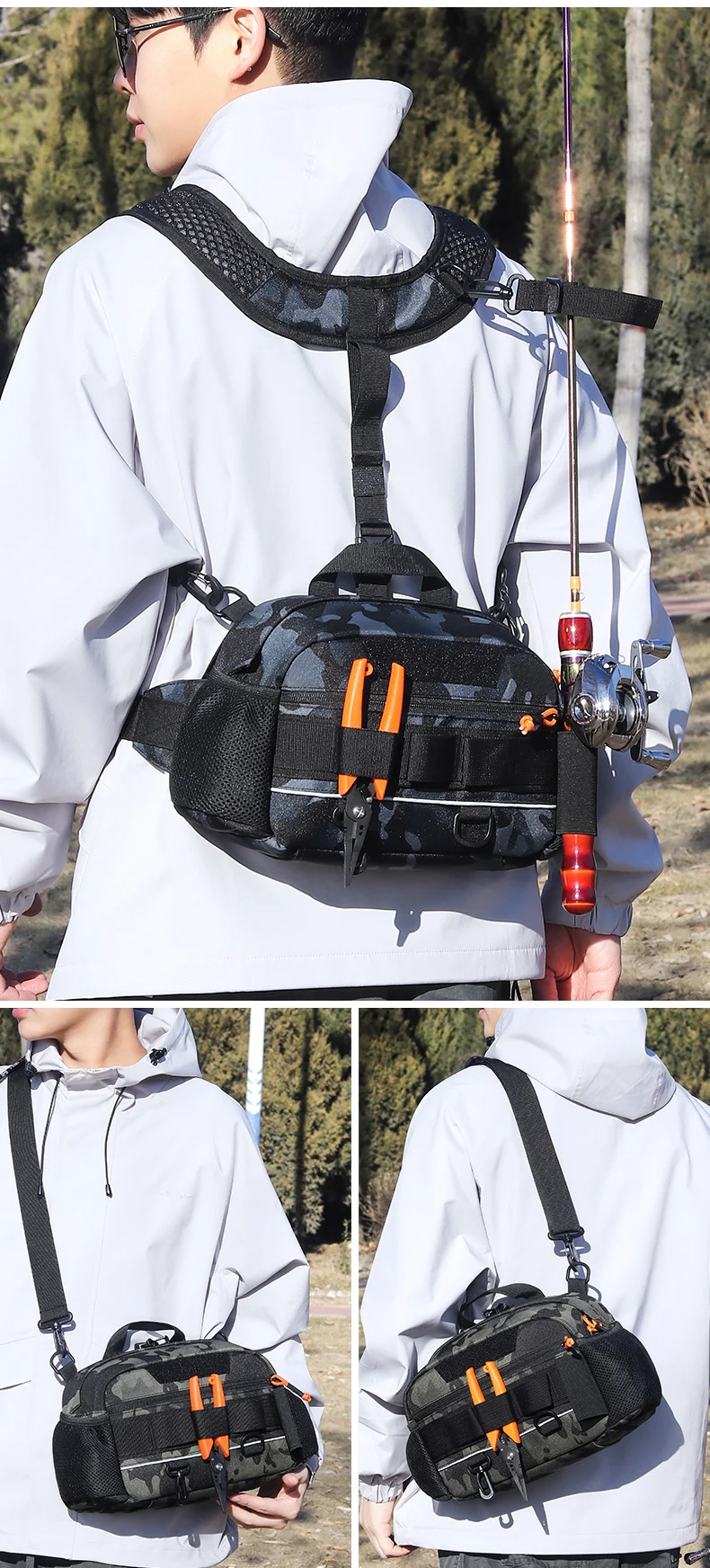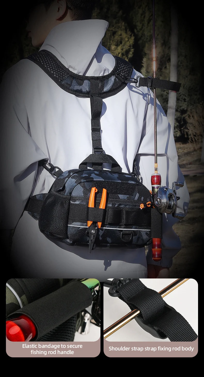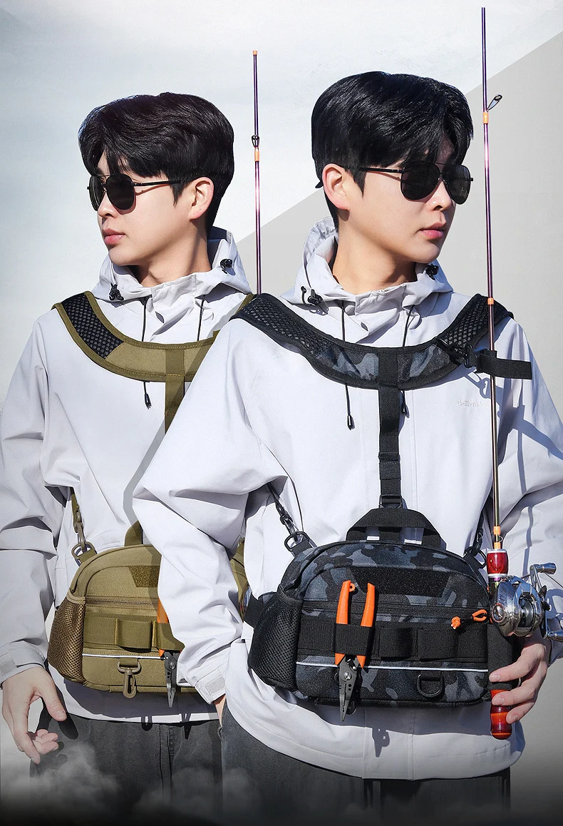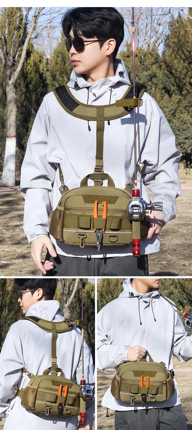 Riñonera táctica Luya para pesca, bolsas de pecho Molle de viaje, senderismo al aire libre, equipo para correr, mochila de almacenamiento portátil con soporte para caña
