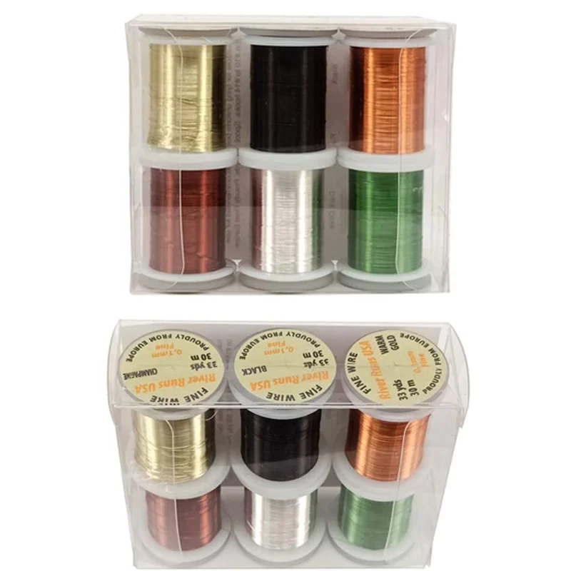 Con orgullo de Europa, Riverruns maravillosos cables de cobre de 6 colores/juego están hechos de un ultra alambre a base de cobre sin deslustre de un solo hilo de gran calidad que no se deslustra que se utiliza para nervaduras, peso, flashes, alambre de cepillo doblado y, así como un componente del cuerpo en ninfas. serpentinas y otras moscas.