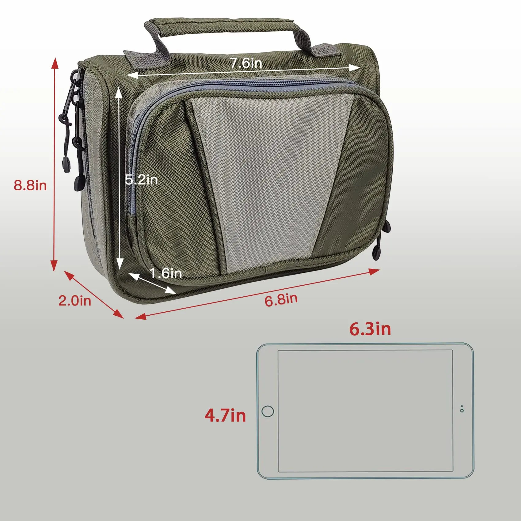 Main pocket size: 8.8x6.8x2inch / 22x17x5cm External pocket size: 7.6x5.2x1.6inch / 19x13x4cm