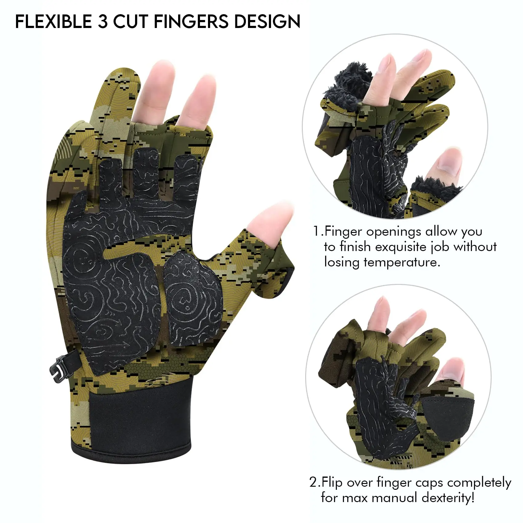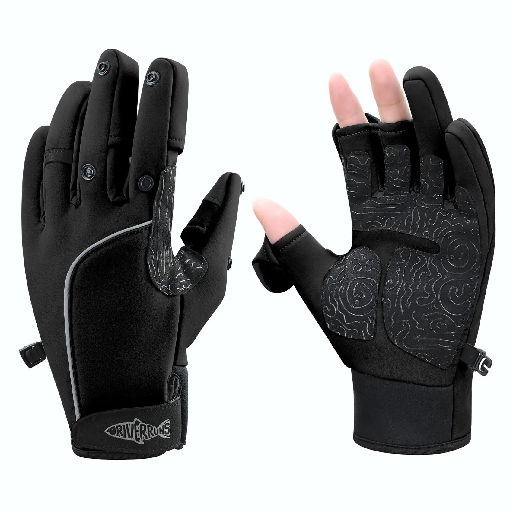Con sus innovadoras aberturas para el pulgar, el índice y el dedo medio, los guantes de pesca Riverruns ofrecen la flexibilidad de cambiar de calor de cobertura total a puntas de los dedos expuestas, le permite manejar su equipo de pesca con facilidad sin exponer toda su mano al frío congelante.