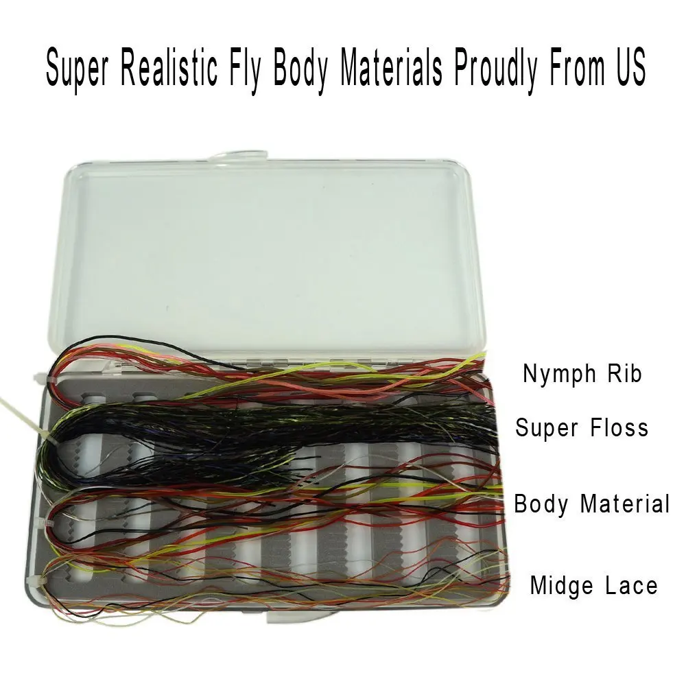 Materiales de atado de moscas superrealistas de riverrun, súper hilo, Rib Nymph, encaje Midge, Material del cuerpo, mejores selecciones de Color, todo en uno con una caja de mosca gratis, con orgullo de EE. UU., serpentinas.