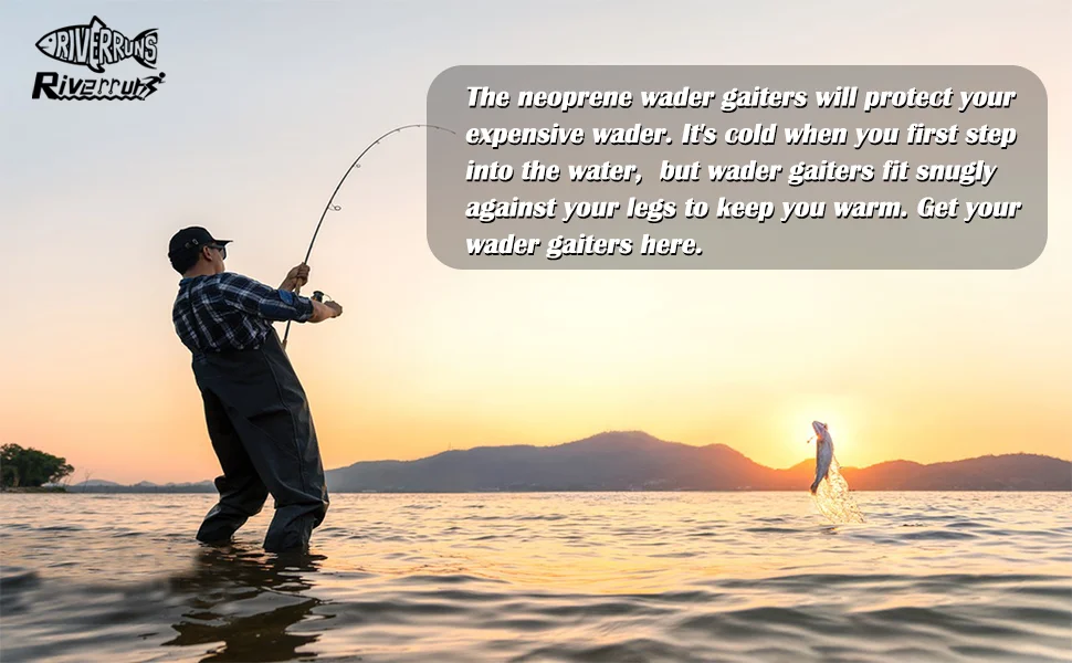 Las polainas de neopreno protegerán tu costoso wader. Hace frío la primera vez que entras en el agua, pero las polainas se ajustan perfectamente a tus piernas para mantenerte caliente. Consigue tus polainas de ave zancuda aquí.