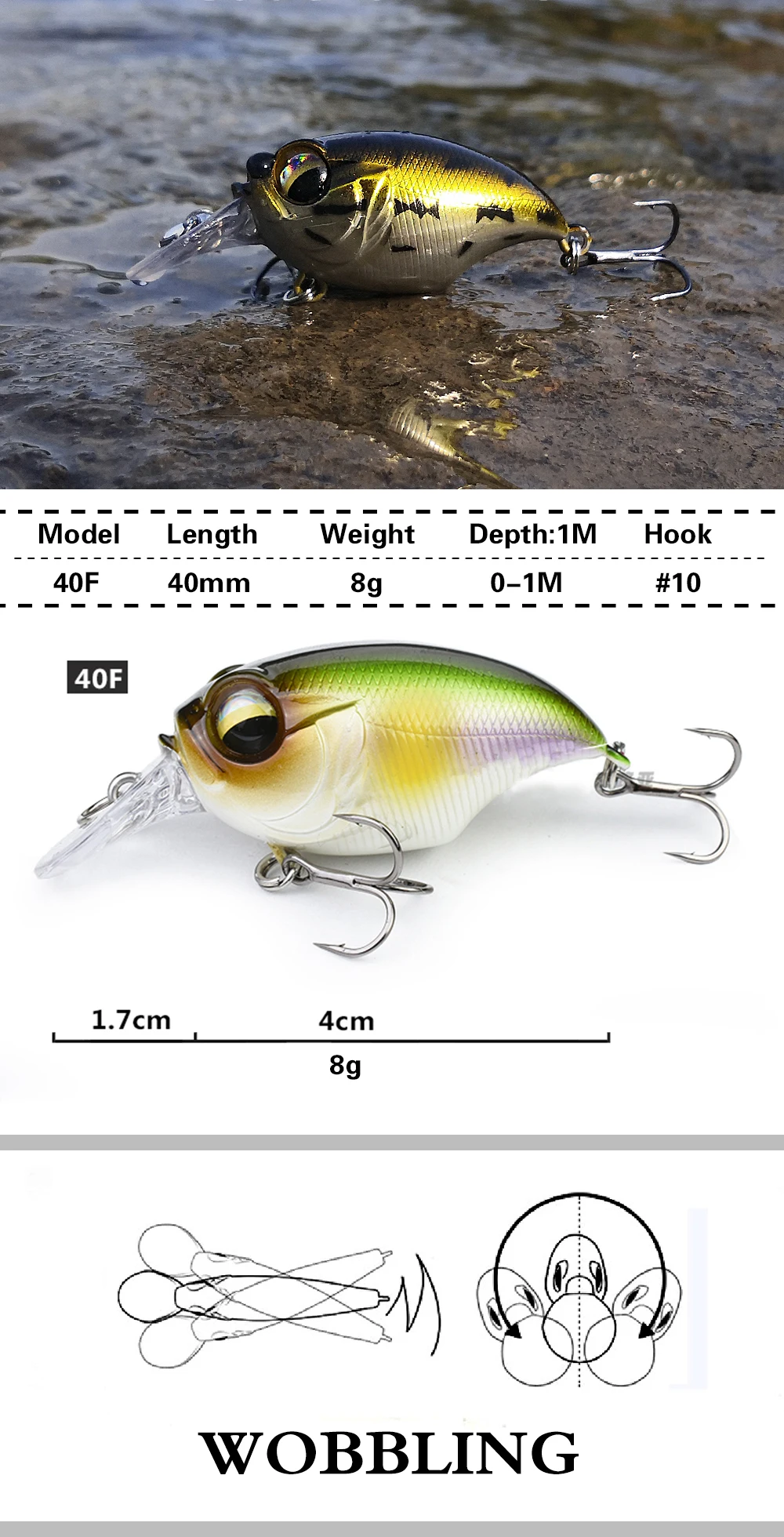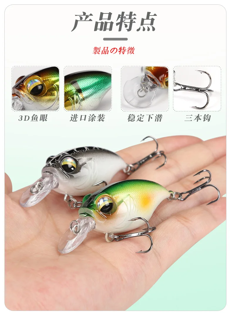 Rock Your Fishing Game con este señuelo de lubina de agua salada y Labridae, 38mm/8g, lengua corta mecedora, gordito para luz de largo alcance