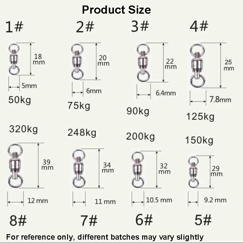 Rodamiento de bolas de acero inoxidable, accesorio giratorio con anillo sólido para agua salada, Material de Pesca, conector de aparejo, 30 piezas