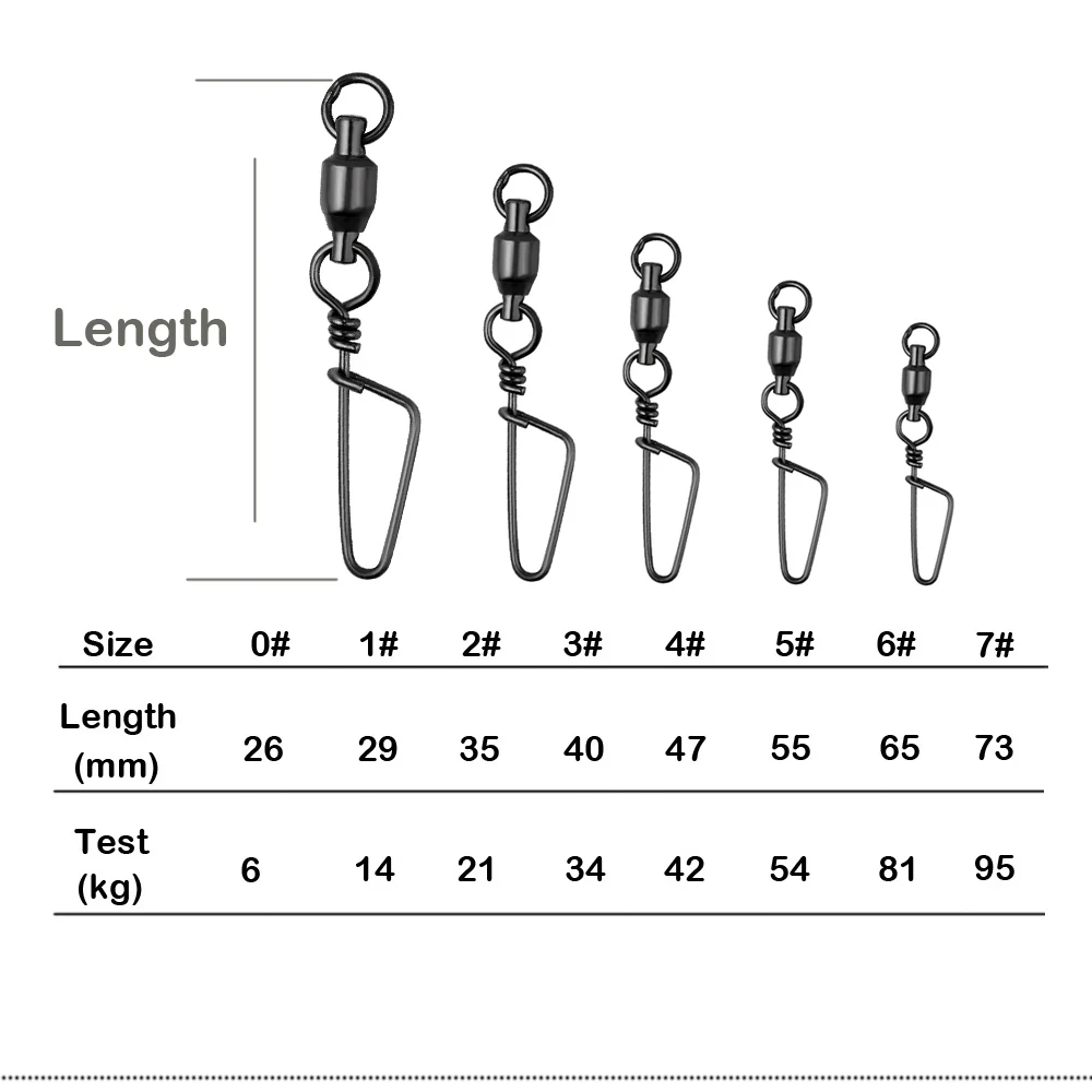 Pesca giratoria 28mm ~ 80mm rodamiento de bolas de acero inoxidable Rolling Snap pesca giratorios broches CONECTOR conexión rápida Señuelos de Pesca