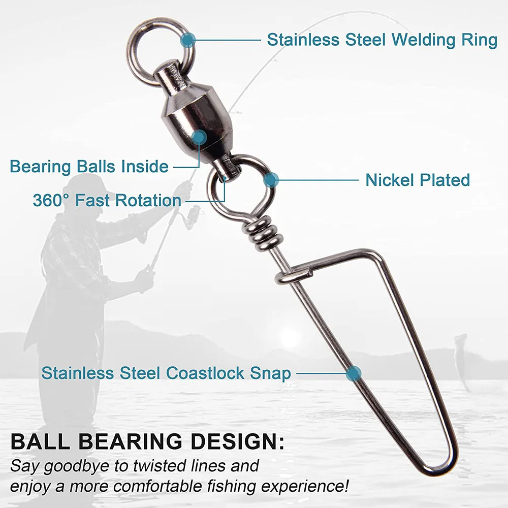 30 Uds. Rodamiento de bolas de cobre giratorio para pesca con cierre de costa anillo soldado de acero inoxidable 26-503LBS conectores de pesca de agua salada