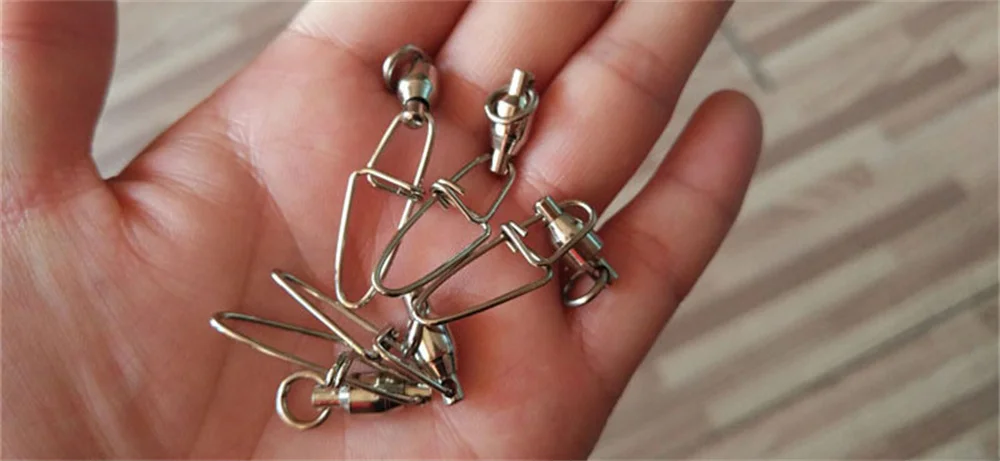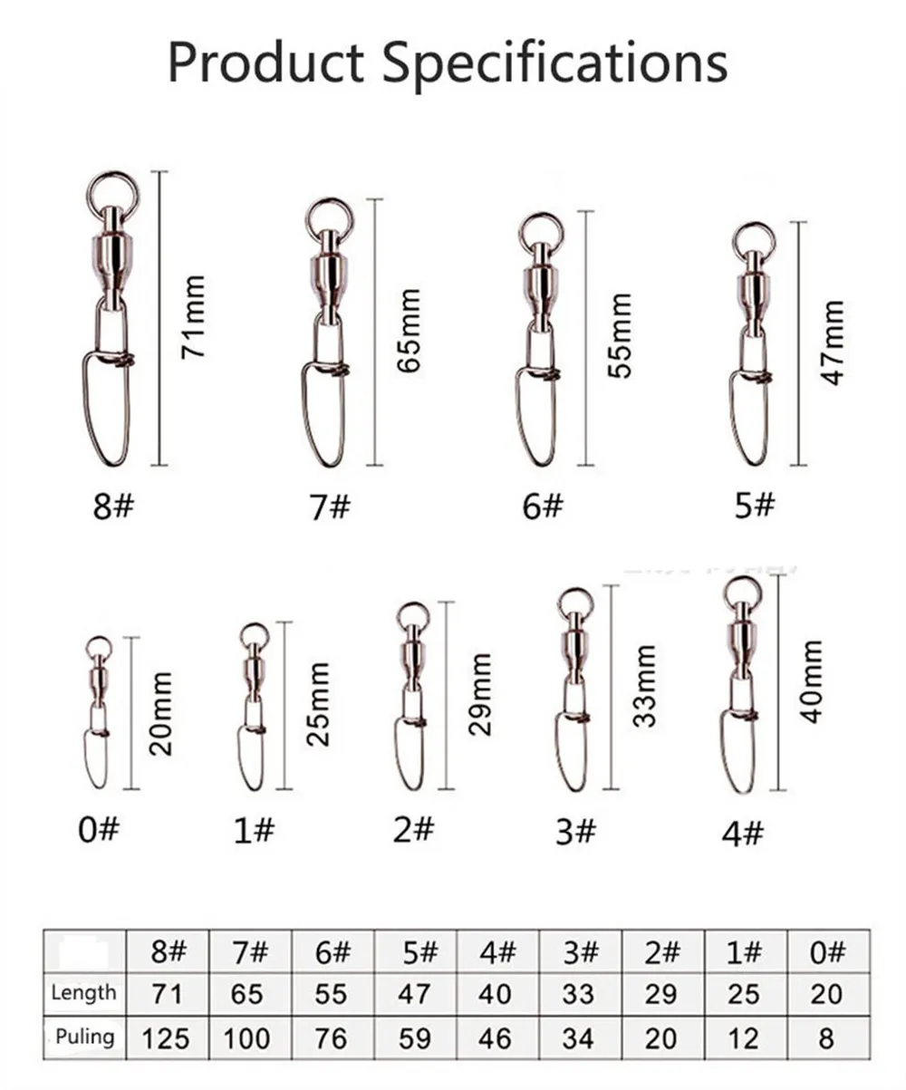 Rodamiento de bolas giratorio, Conector de cobre y acero inoxidable, cierre cruzado, accesorio de Pesca, 50 Uds./lote