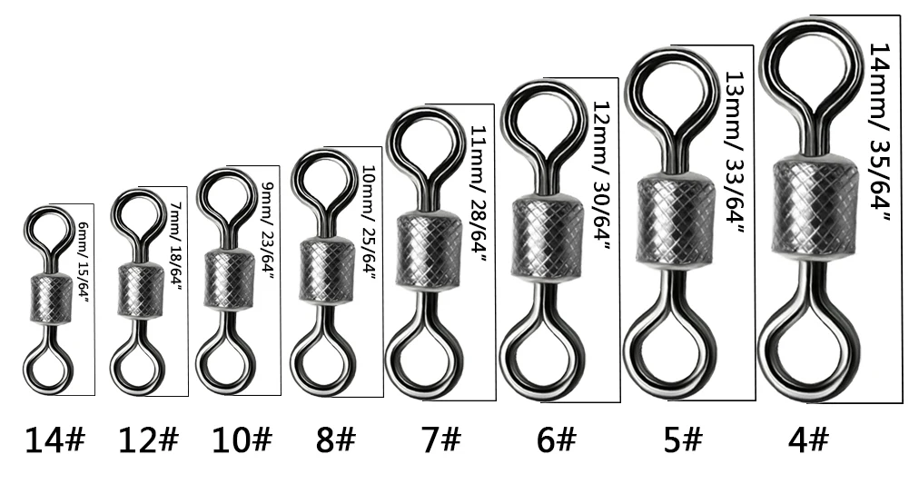 Rodamiento de bolas giratorio de pesca, caña larga de 20 piezas, Conector de barril de acero inoxidable giratorio para carpa, accesorios de pesca, aparejos