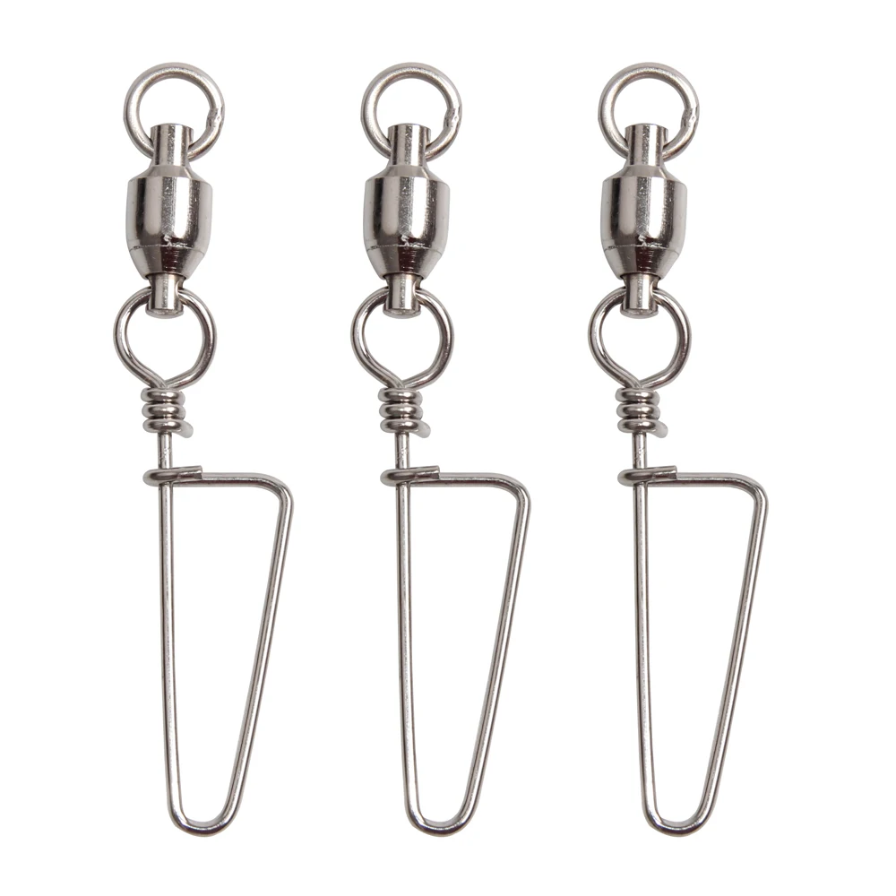 Rodamiento de bolas de acero inoxidable plateado de 20 piezas, pesca giratoria con cierre de presión, Señuelos de Pesca duros, conector de tamaño 1 2 3 4 5 6 7 8