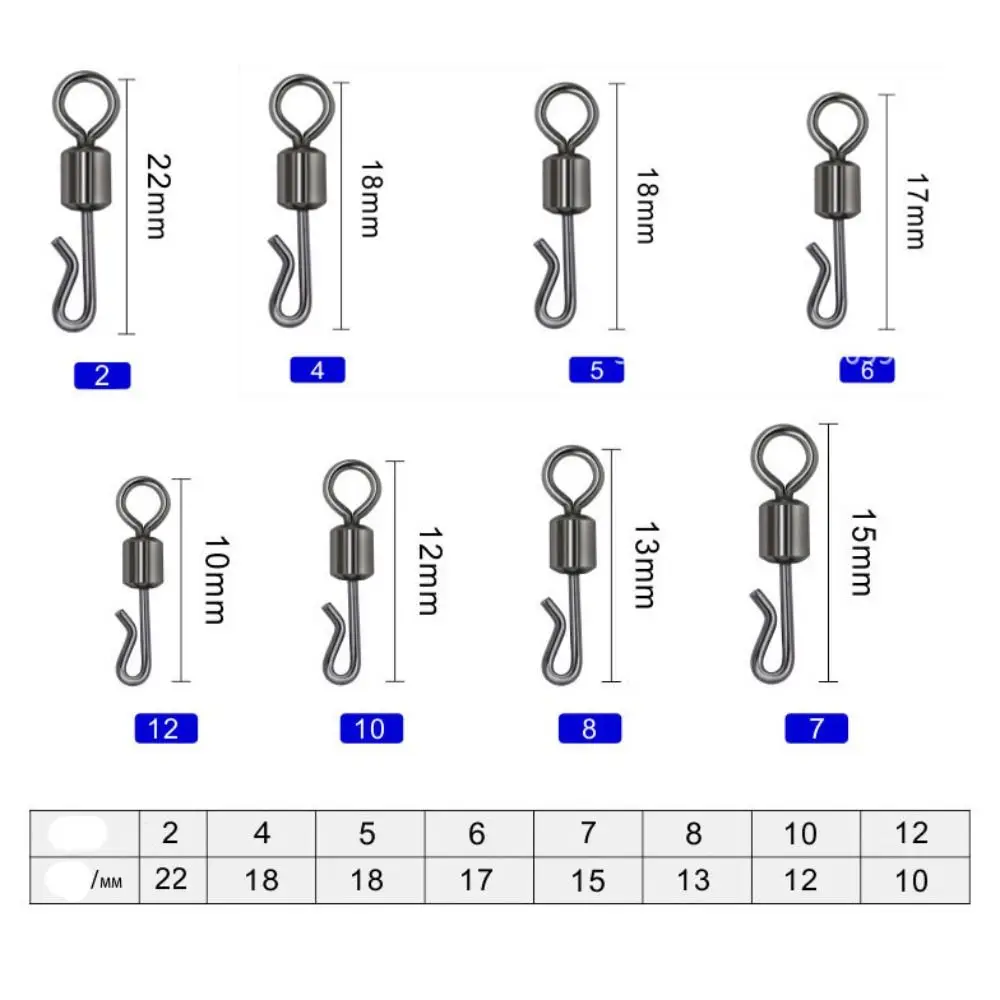 Tipo: rodamiento giratorio en forma de Q Material: acero inoxidable cobre Color: negro Tamaño: Como muestran las imágenes Forma: giratorio Características: 1. Nuevo y de alta calidad. 2. Rodamiento giratorio en forma de Q de cuerpo largo y conector de pesca a presión. El paquete incluye: 25 rodamientos giratorios en forma de Q. Notas: El producto puede tener un error de 1-2cm, y el color puede ser un poco diferente de la imagen, por favor entiéndalo.