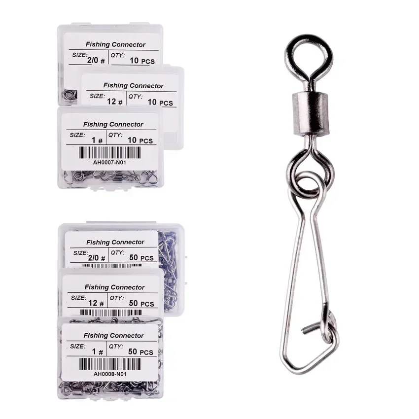 Rodamiento de pesca de acero inoxidable MS QL, eslabones giratorios de enclavamiento, giratorio con enganchado, aparejos de conector de gancho de pesca a presión, 10 piezas