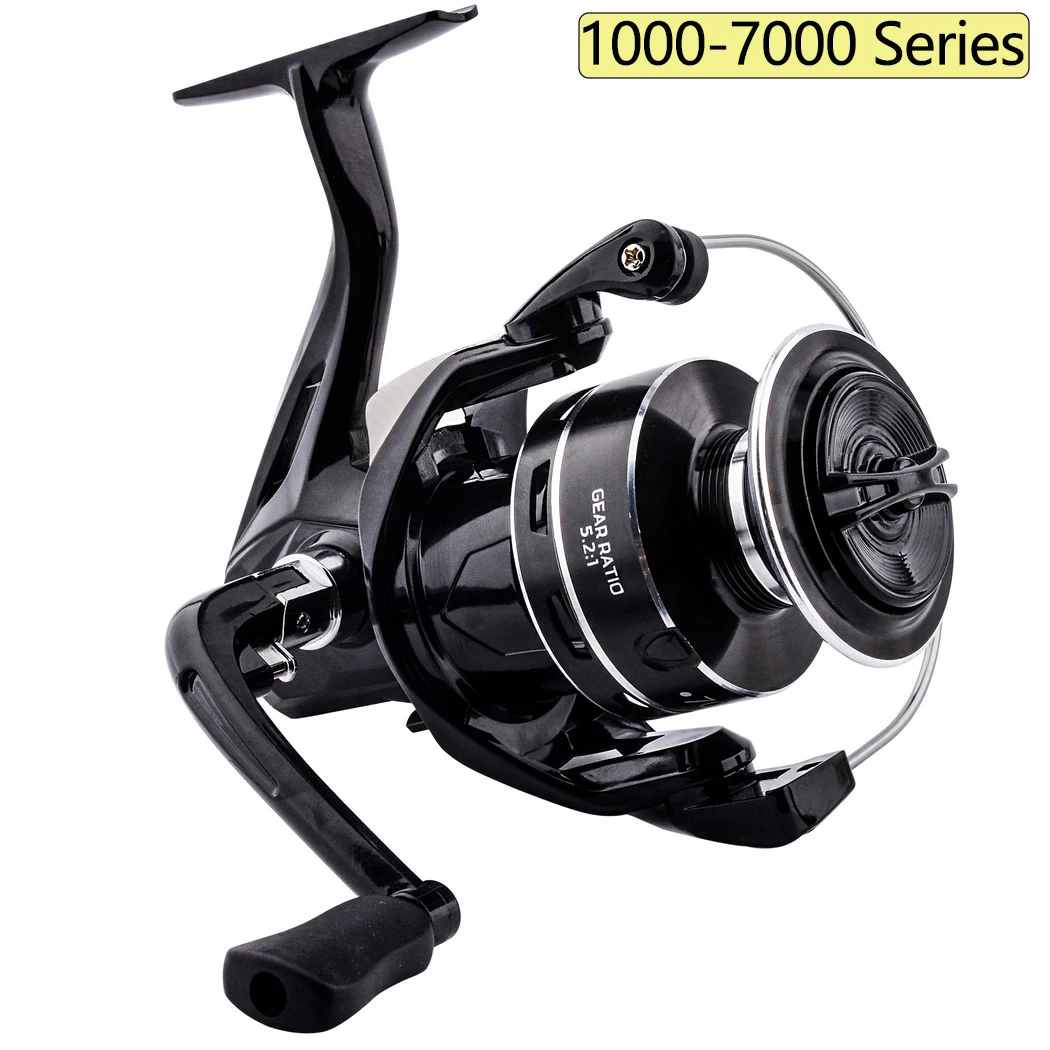 Rodamientos de bolas, carrete giratorio de arrastre máximo de 10KG, cuerpo de Metal duradero, carrete de pesca de agua dulce y salada