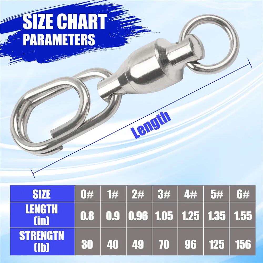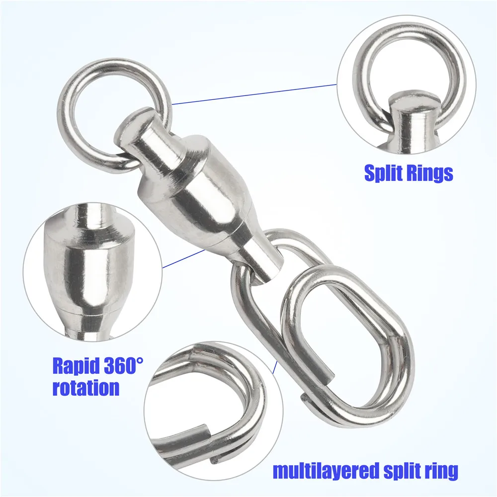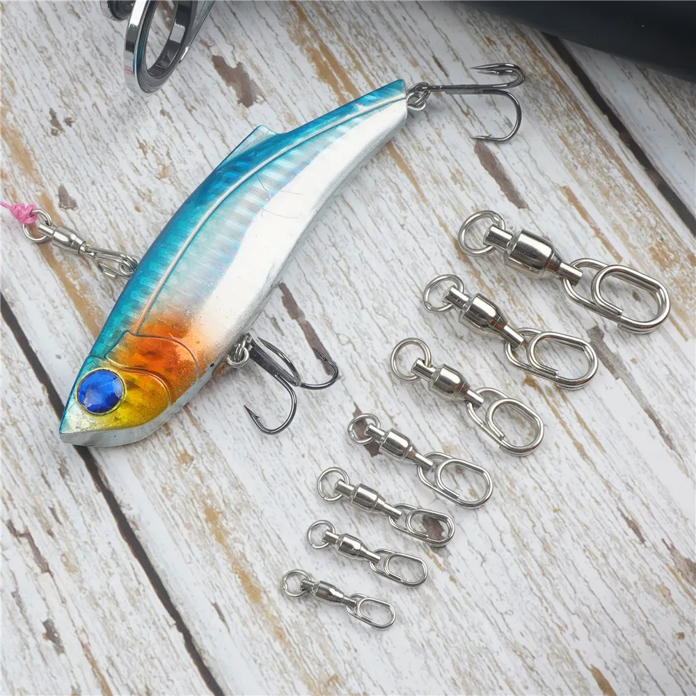 2. Clips de alimentación de acero inoxidable, rodamientos giratorios de bolas de cobre. Es fuerte, resistente y resistente a la corrosión. El broche de pesca gira en agua salada y agua dulce.