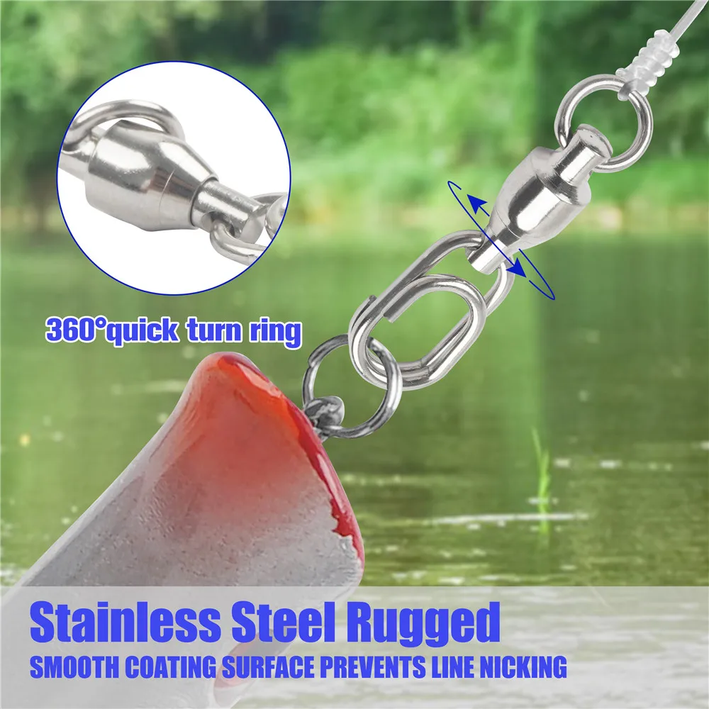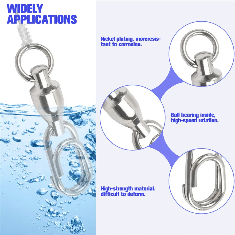 3. Clips giratorios de pesca, alta resistencia de 30lbs a 156lbs. Clips de pesca de cambio rápido fácil de conectar varios aparejos de pesca terminales, tales señuelos duros, señuelos blandos, plomadas de pesca, cabezas de plantilla, aparejos de pesca con señuelos giratorios.