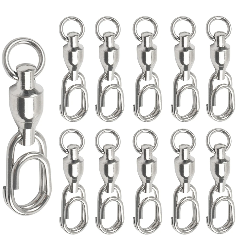 3. Clips giratorios de pesca, alta resistencia de 30lbs a 156lbs. Clips de pesca de cambio rápido fácil de conectar varios aparejos de pesca terminales, tales señuelos duros, señuelos blandos, plomadas de pesca, cabezas de plantilla, aparejos de pesca con señuelos giratorios.